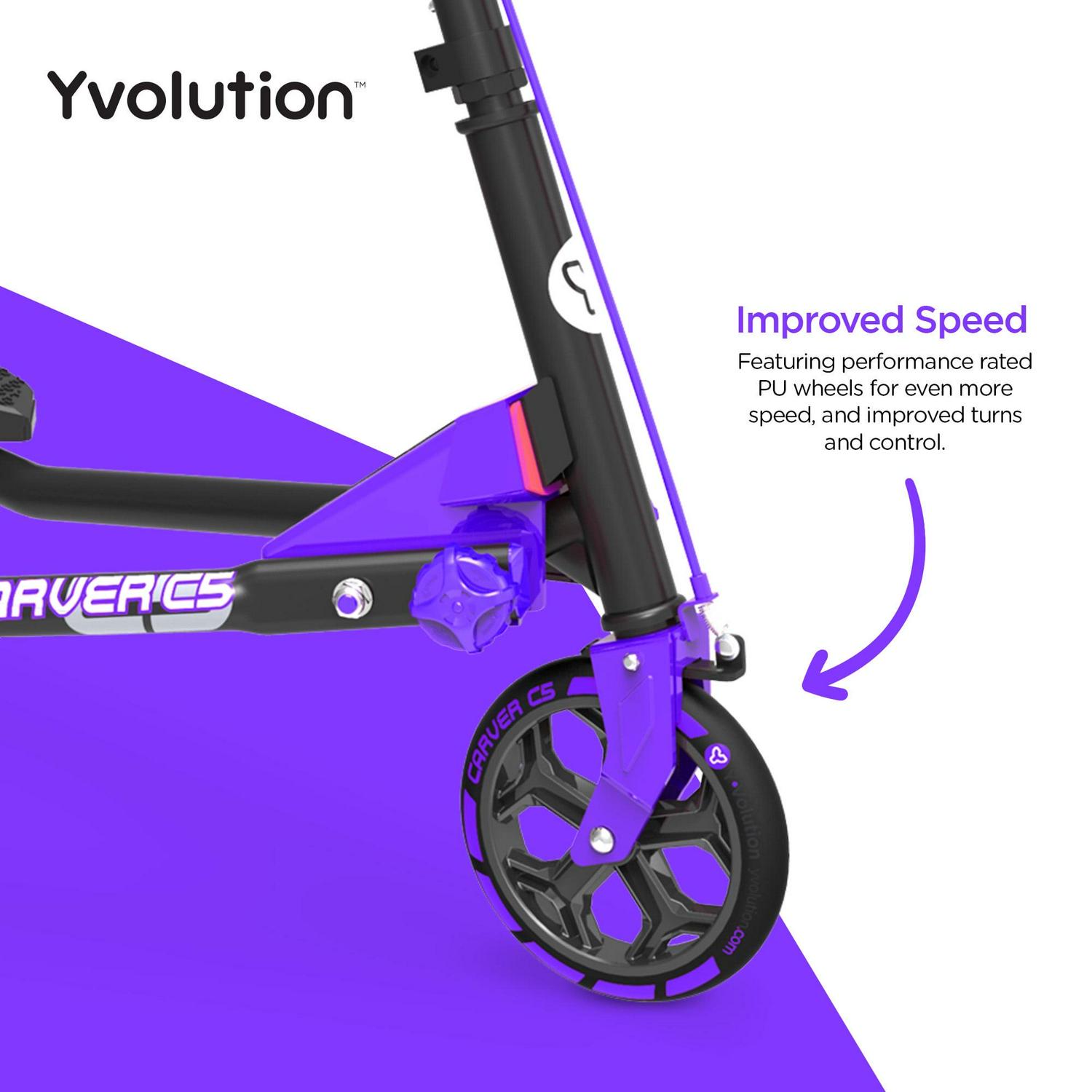 Looking for a more exciting ride than a regular scooter The Y Fliker C5 is the most advanced scooter in our Carver range, packed with clever add-ons and FLEX technology to make it easier than ever to pull off insane stunts and rolling wheelies! Just like a downhill skier, simply twist your hips and push down through your legs to reach top speeds of up to 25 km/h. The stable frame and lean steering make light work of power carving and 360-degree spins. Fold it up and take it wherever you go!