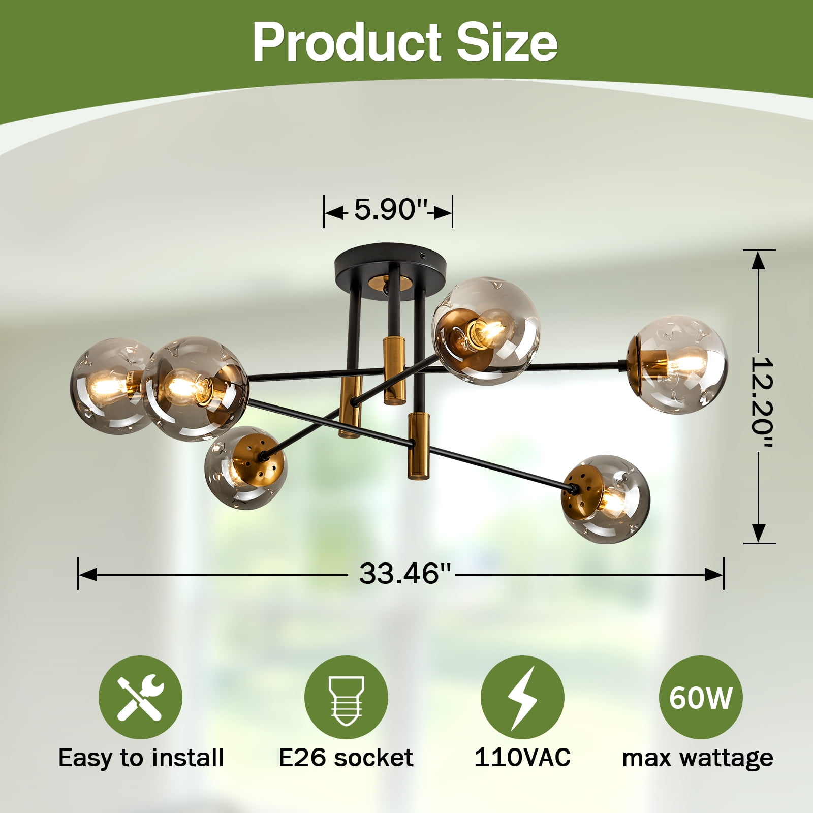 YYJLX 6-Lights Glass Chandelier,Modern Flush Mount Ceiling Light Fixture,Farmhouse Lighting for Dining Room Living Room Bedroom Kitchen Passageway..