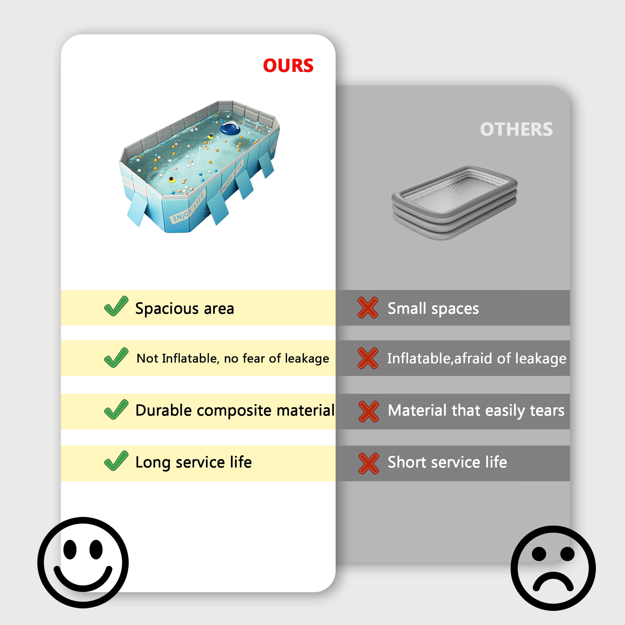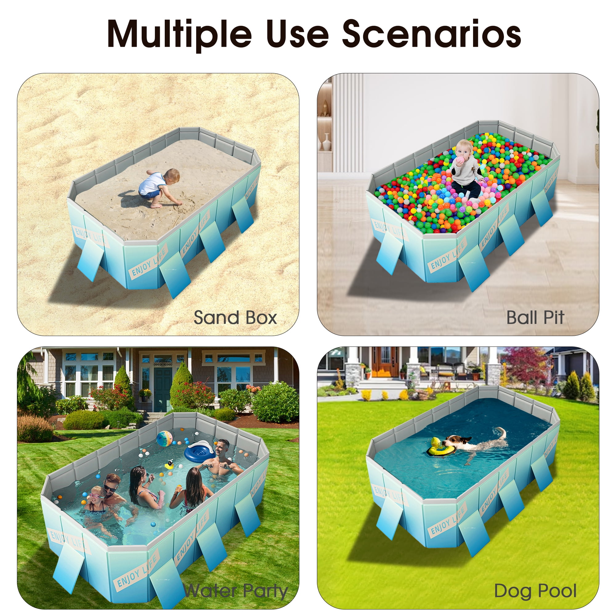 YYW Foldable Portable Swimming Pool, Indoor/Outdoor Non-Inflatable Above Ground Swimming Pool for 1-8 People, Rectangular Swimming pools for backyard with Drain. Non inflatable pool on clearance sale are easy to set up in just a few seconds. Foldable pool for adults is easy to store, taking up little space. Swimming pools on clearance is also made of sturdy plastic material to ensure durability and puncture resistance. Kid pools clearance hard plastic has two drains to double the speed of drainage. Swim pools above ground for adults and kids is designed for dogs, toddlers, children and families to swim and play indoors, in the backyard, outdoors, in the garden and more. Above ground swimming pools clearance can also be used as a children’s ball pool, sand pool, pet bathtub for different fun for children and families. All in all, kid pools clearance hard plastic provides a spacious and safe environment for family and friends to play and relax in the summer. Family pool clearance can be used as a gift for family and friends on Children’s Day, Black Friday, festivals and holidays.