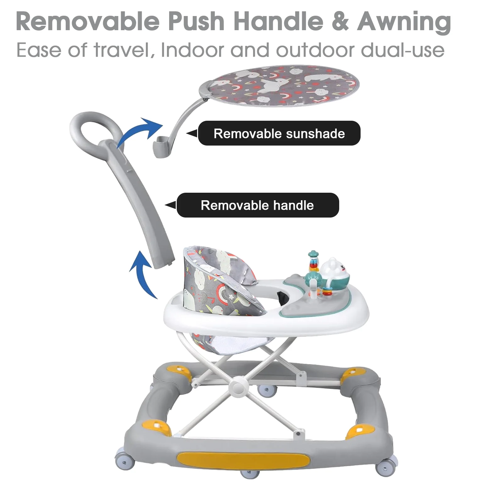 YYW 6-in-1 Baby Walker, Foldable Push Walker with Musical Activity Station for 6-24 Months, Gray