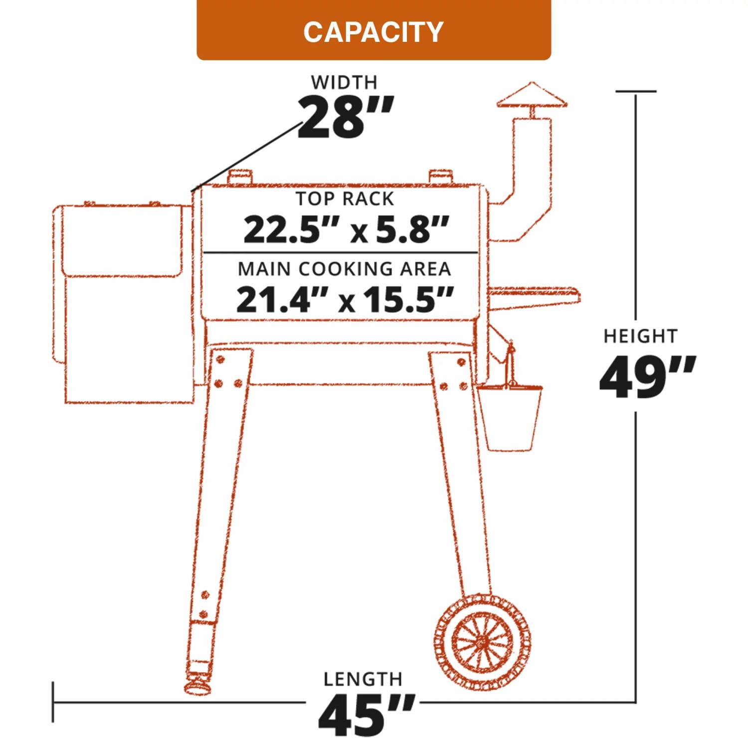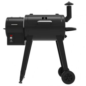 – Huge 459 sq. in. grilling area, 20 lbs. hopper capacity, foldable working shelf, heavy-duty all terrain wheels, rust proof cover and racks