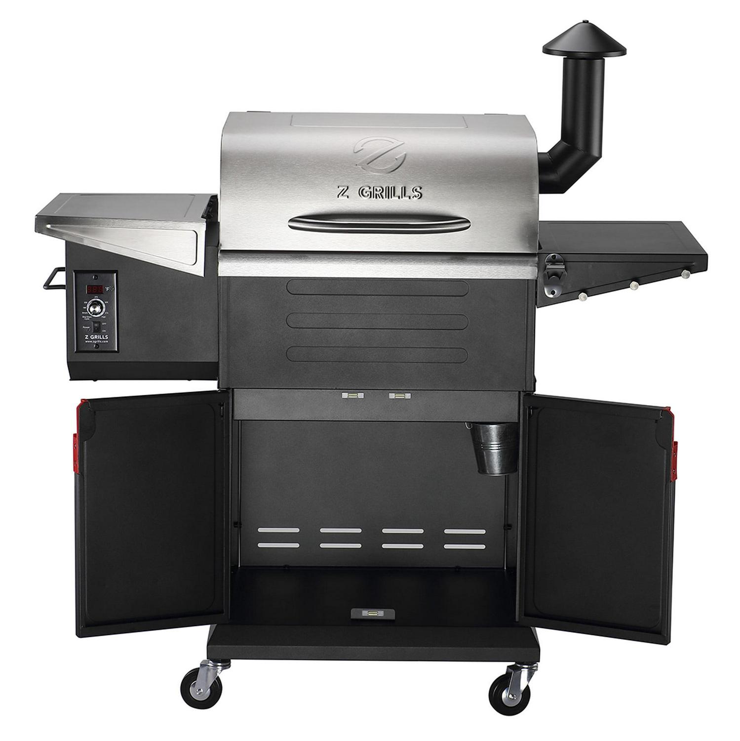 Description: Sear any steak to perfection with the Z Grills 600D3E (L600E) Pellet Grill that allows for open-flame cooking.8-in-1 Versatility & Direct Flame Access: Designed with versatility in mind, our 600D3E (L600E) wood pellet smoker allows you to smoke at temperatures as low as 180 F, bake, and roast from 300 F, and sear on high heat both using indirect heat or using direct heat (up to 750 F) over an open flame. Enjoy unlocking limitless recipes with your versatile L600E wood pellet grill.Spacious Cooking Area: With 572 sq. inches of porcelain coated cooking surface including a second tier rack, the L600E can accommodate 24 burgers, 5 racks of ribs, or 4 whole chickens!PID (Proportional Integral Derivative) Temperature Controller: Adopting the most advanced temperature control technology, your 600D3E (L600E) wood pellet grill and smoker precisely maintains temperatures to your set point throughout the entire cooking process. You ll get perfectly cooked meals every single time.Natural Smoky Flavor: No need for natural gas or propane. Our wood-fired grill is fueled by 100% all-natural hardwood pellets, producing a pure hardwood taste. Get ready to kick your taste buds into a new dimension!Ease of Use: To achieve that awesome flavor of real wood, all you need to do is load the pellet hopper with pellets, set the temperature, and the Z Grills pellet grill will take care of the rest. It s that easy.Upgraded with an Enclosed Storage Cabinet: The enclosed double-door storage cabinet keeps all of your grilling utensils and materials out of the way while close at hand. And with a side shelf, you can do your prep work right by the grill with no other tabletop necessary. Enjoy the ultimate backyard cooking experience with a Z Grills.