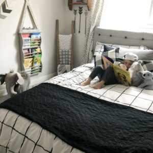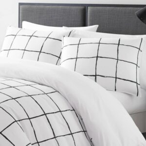Black brushstrokes on a crisp white background create a bold windowpane check that is graphic while still reflecting the artist’s hand. Printed on silky microfiber, this City Scene painterly grid offers a sophisticated modern accent for your bedroom. Full/Queen Comforter Set includes 92″ L x 92″ W comforter and two 21″ L x 27″ W standard shams. King Comforter Set includes 92″ L x 110″ W comforter and two 21″ L x 37″ W king shams.