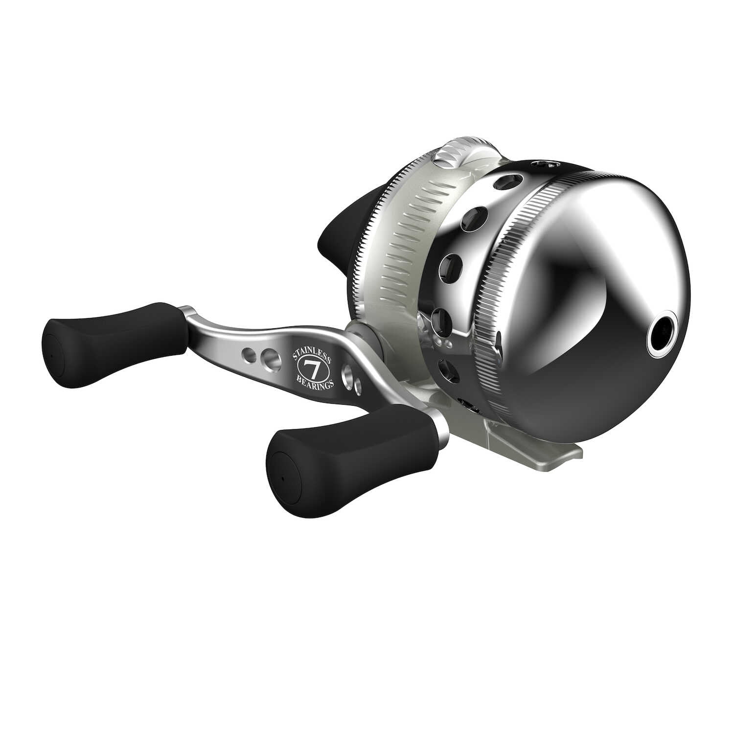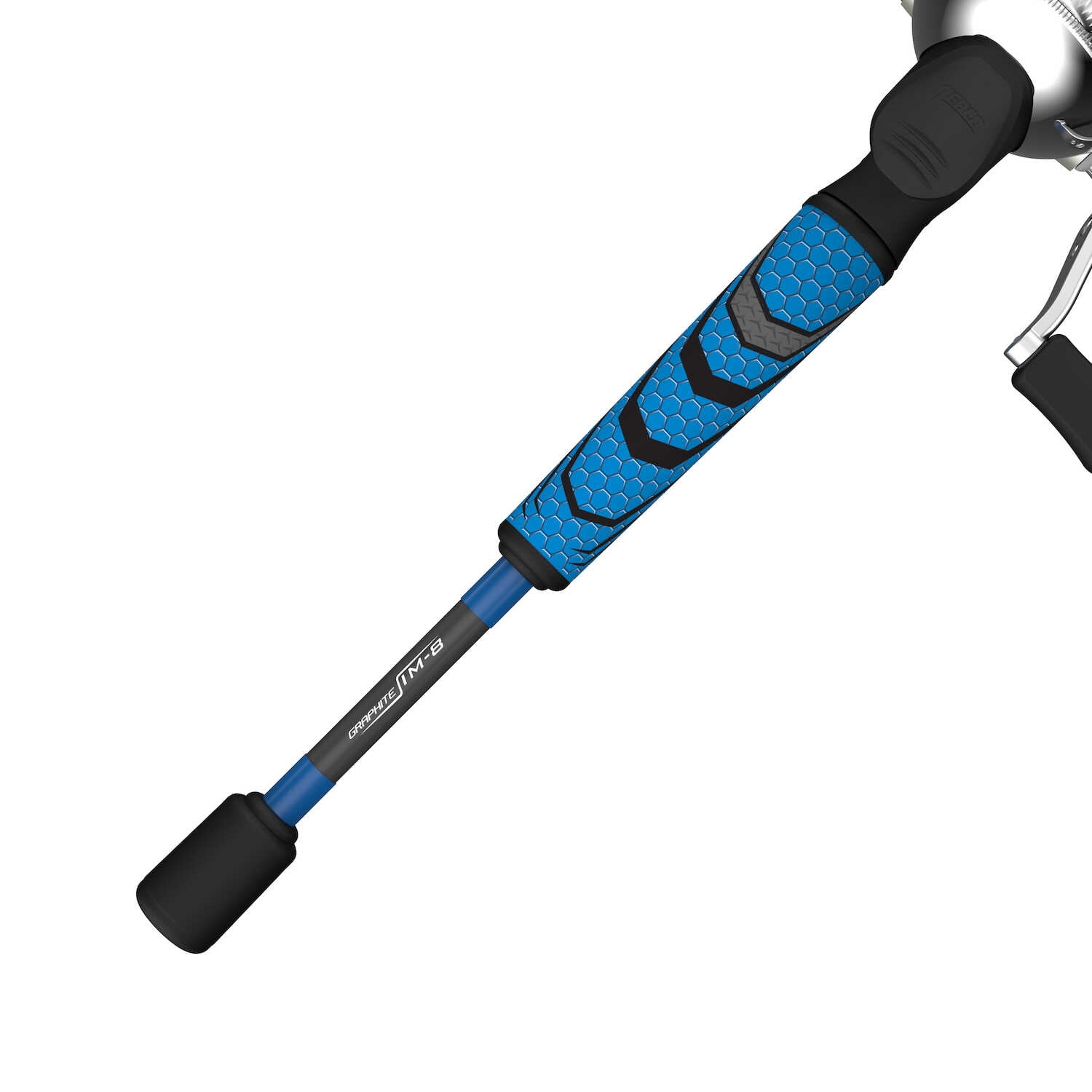 6-foot 6-inch 1-piece IM8 graphite fishing rod with ComfortGrip handle and built in Hook Keeper All-metal gears with an Instant Anti-Reverse clutch Pre-spooled with 10 lb Zebco® line Oscillating Quick-Change Spool and comfortable soft-touch thumb-button design Changeable right- or left-hand retrieve with a patented no-tangle design Forged Aluminum and double anodized front cover Triple-cam dial-adjustable disk drag Solid-brass pinion gear and 3X Positive Pick-up™ Ceramic Pins