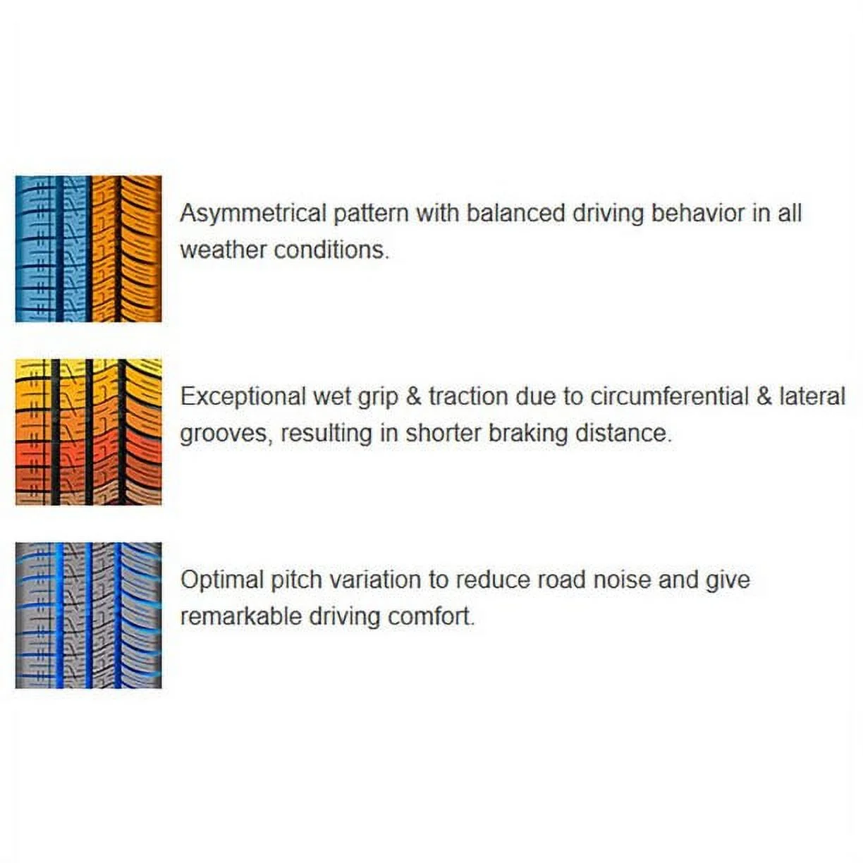 Optimized for safety Optimal pitch variation of tread design Enhanced stiffness of the tread blocks Unique tire patterns Manufacturer Warranty