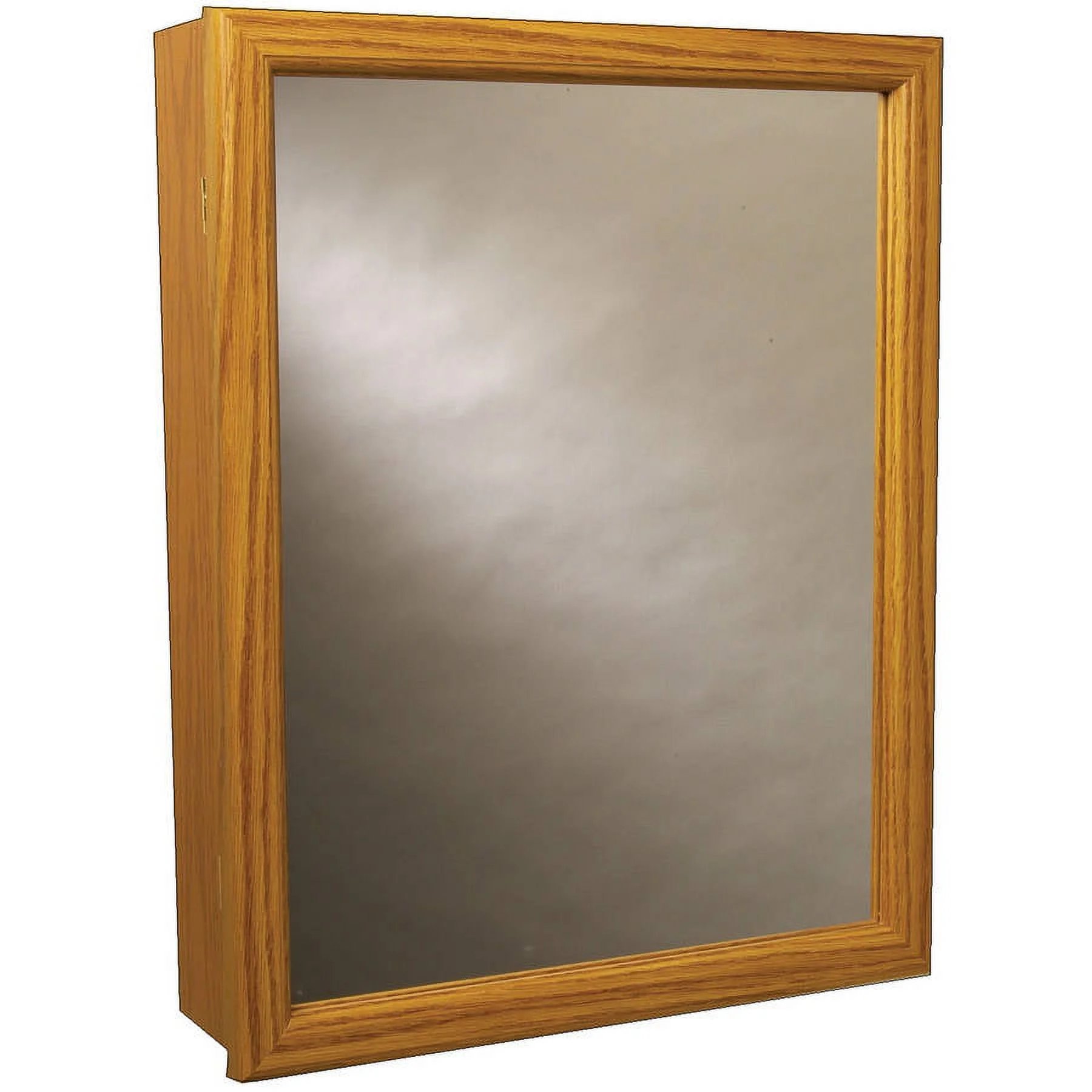 Zenith K16 Oak Framed Swing Door Medicine Cabinet: Measures 15.5?W x 19.25?H x 4.5?D Oak framed Wood body Mirrored medicine cabinet includes 1 adjustable shelf Surface mount installation Left- or right-hand opening Swing door Adds more storage space to any bathroom