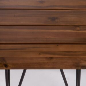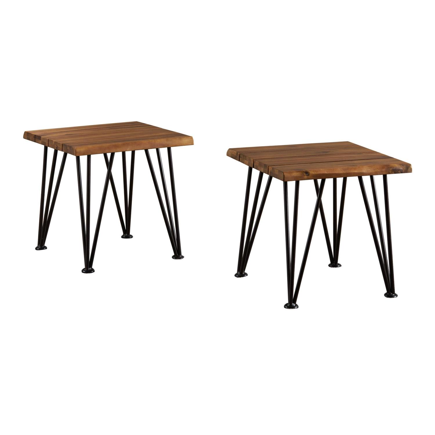 Zenith Outdoor Industrial Accent Table, Set of 2, Teak Finish, Rustic Metal