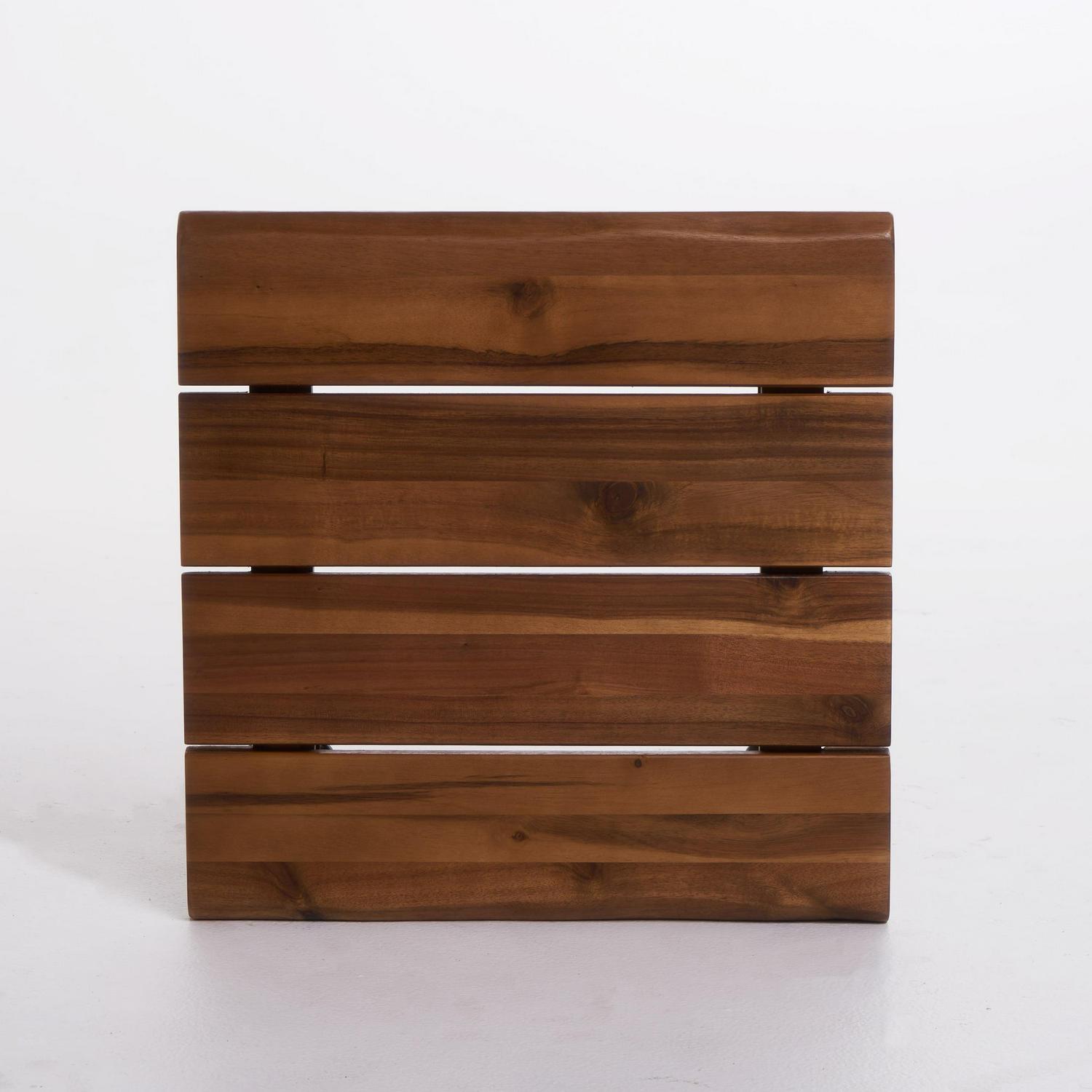 These rustic, industrial side tables are a great addition to any backyard setup. Featuring an acacia wood table top on iron legs for a true, authentic rustic feel, these accent tables are both sturdy and stylish, the perfect combo for any patio side table. Treated specifically for the outdoors, you will be very happy with these acacia wood side tables.