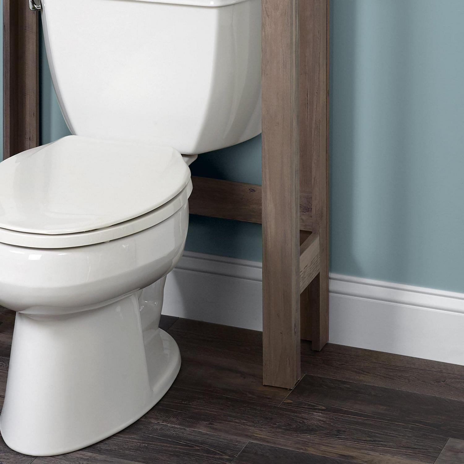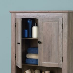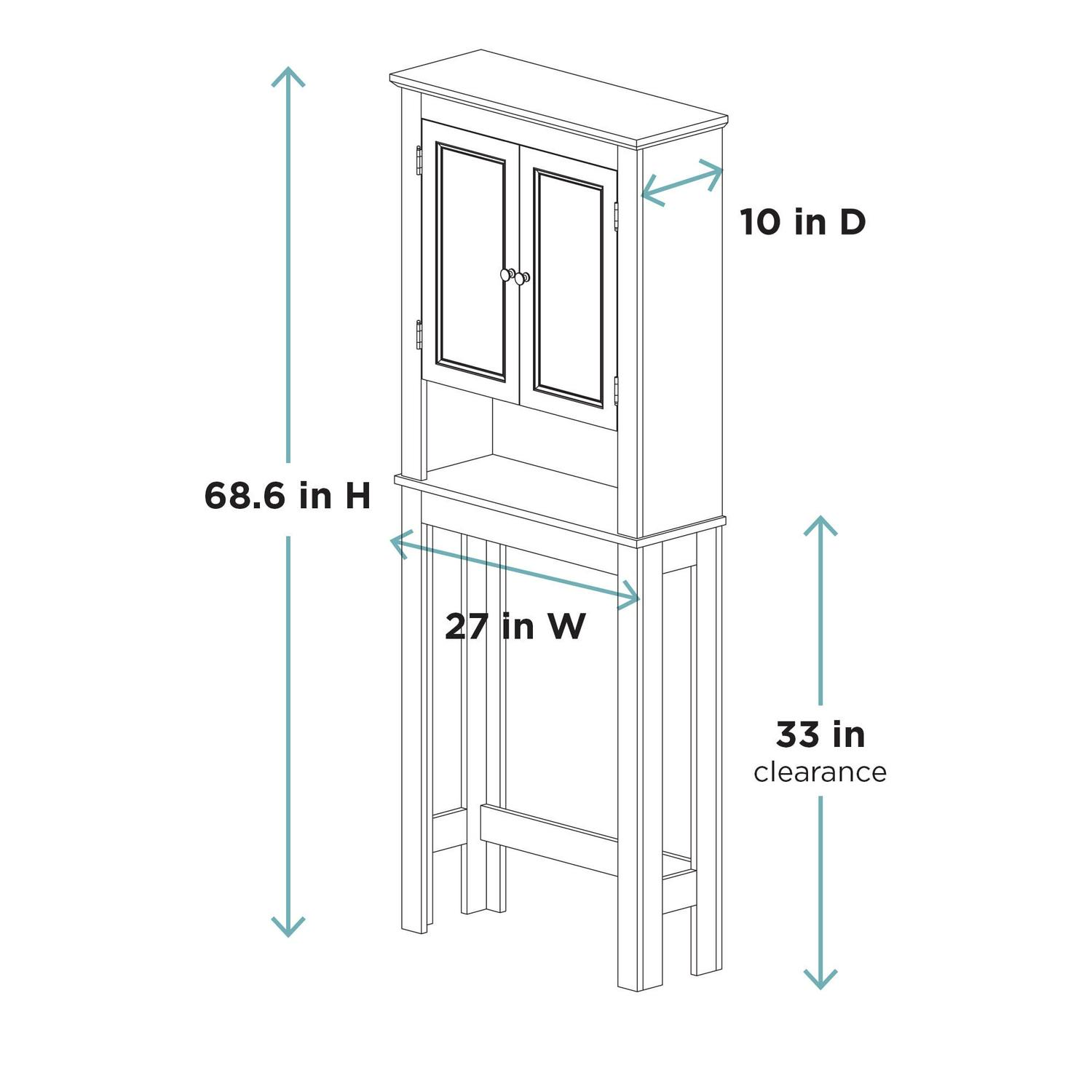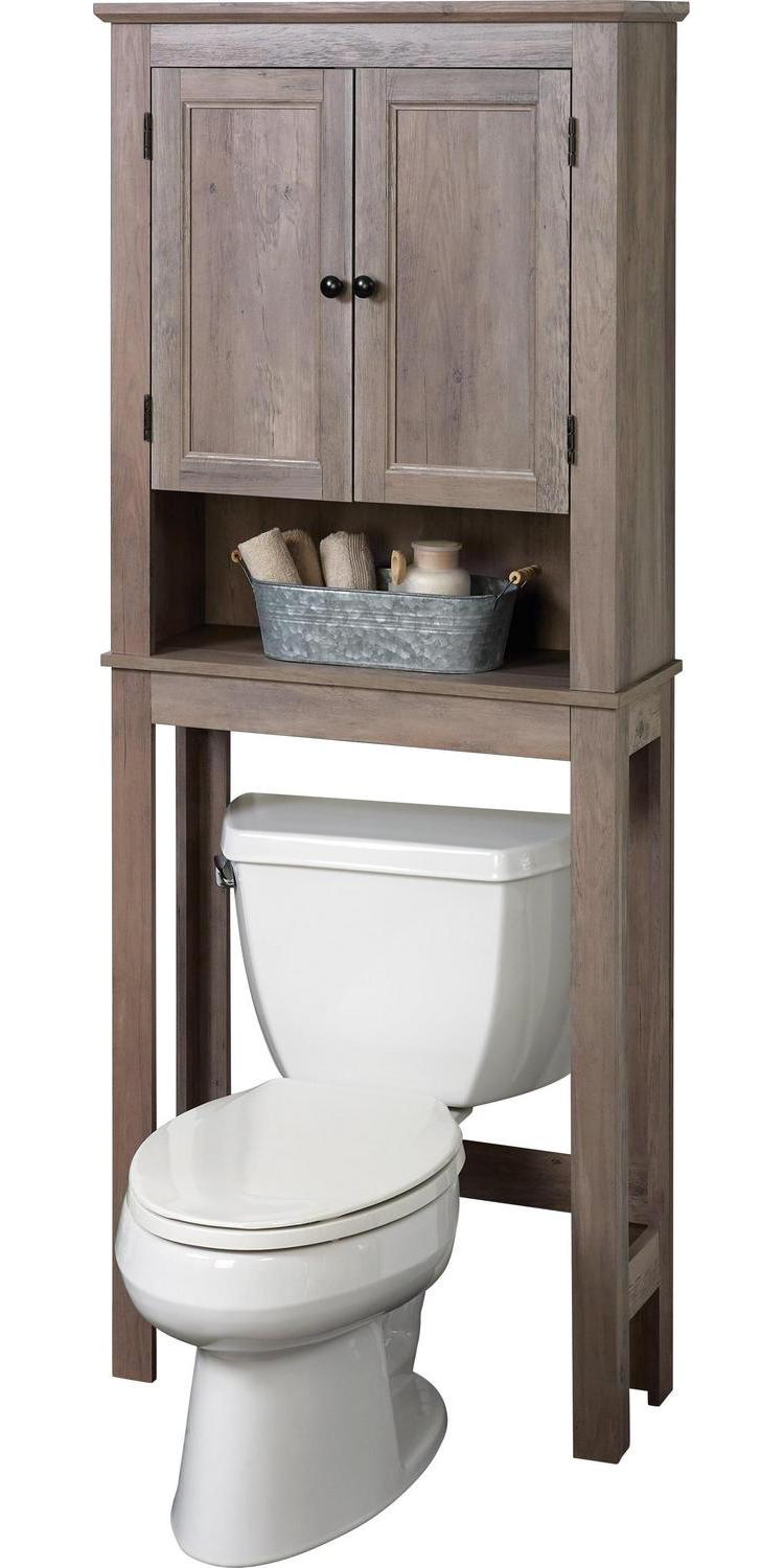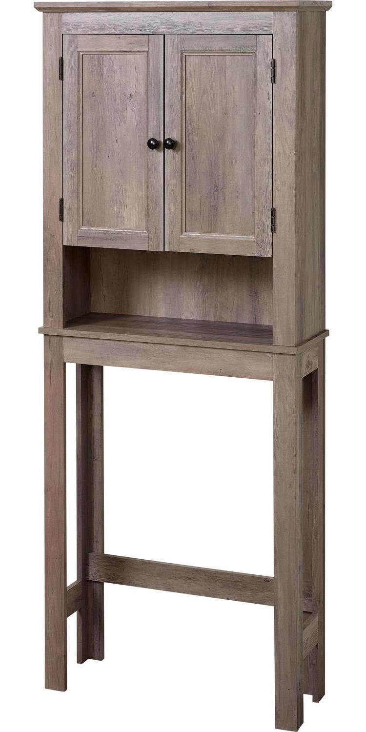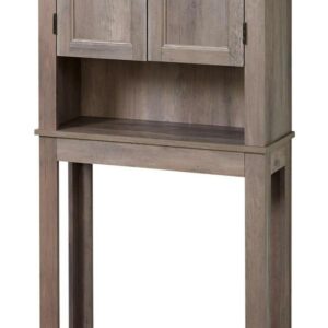With versatile shelving and a distressed gray finish, the Zenna Home Custom Suite over-the-Toilet Spacesaver creates beautiful bathroom storage. The space saving unit’s 33 inches of clearance fits over most toilets. Its open shelf is ideal for folded linens or decorative accessories. Behind the doors, 2 more shelves provide extra storage. One shelf is adjustable in height. Bronze hardware provides a stylish accent. Installation is easy and takes less than 30 minutes.