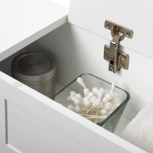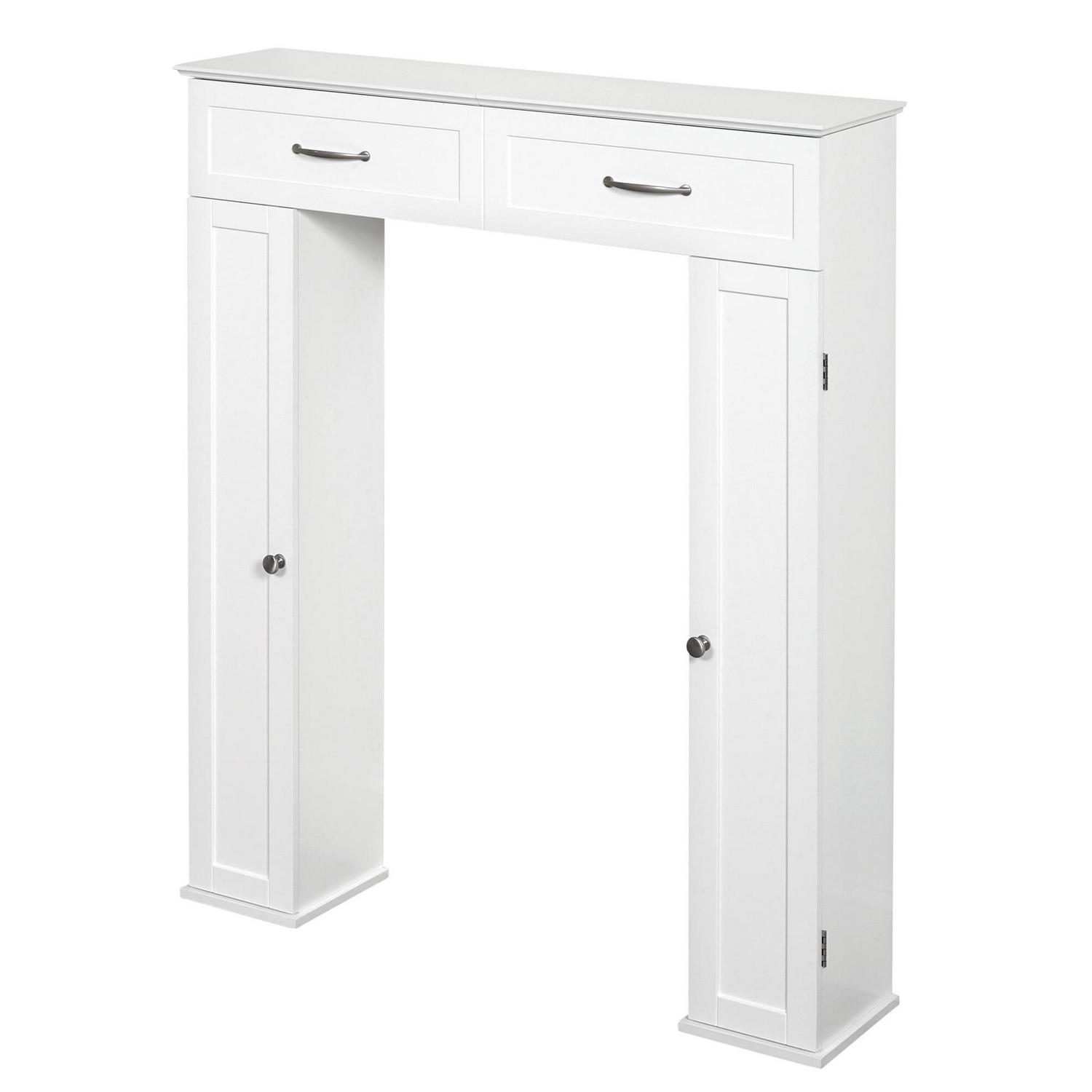 Choose the innovative and space saving Zenna Home Lift Top Bathroom Storage Console Cabinet and say goodbye to bland bathroom storage. With a beautiful design and lots of built in shelving, this cabinet fits around and over your toilet to add valuable storage into your bathroom. Each side of the console unit has a door that opens to reveal four levels of storage (including 2 adjustable-height shelves). The console’s cleverly designed lift top feature allows you to open one half or both sides of the cabinet’s lid to access additional storage. The console has a 36-inch clearance from the floor, allowing to fit over most standard and taller modern toilets. Assembly is easy, with illustrated instructions and hardware included.
