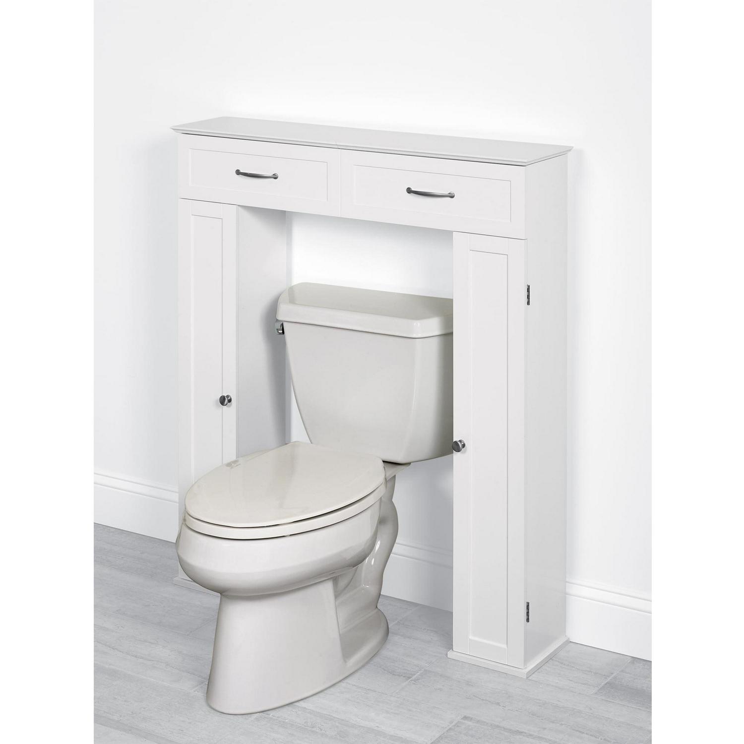 - Stylish bathroom console fits over your toilet to provide valuable storage and organization