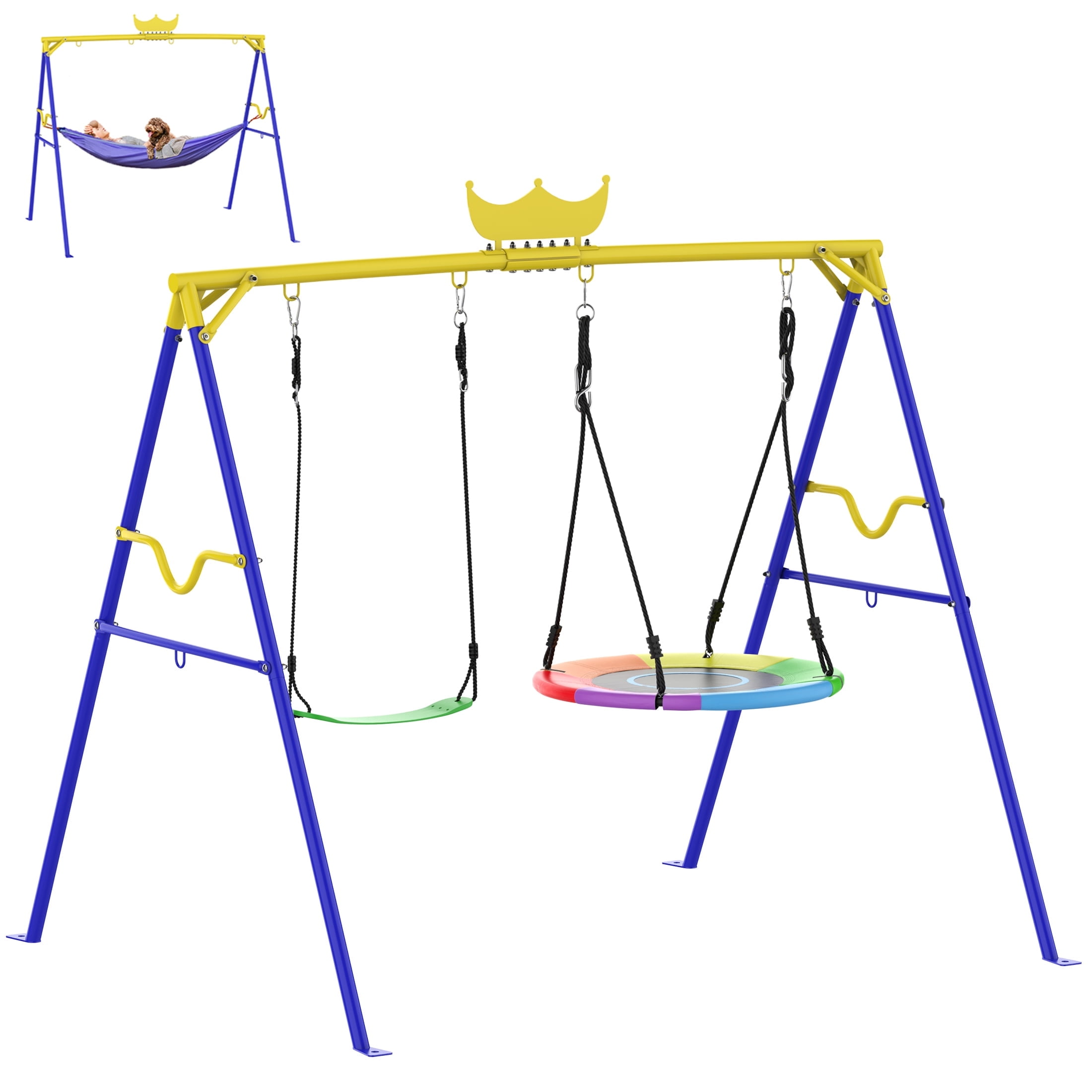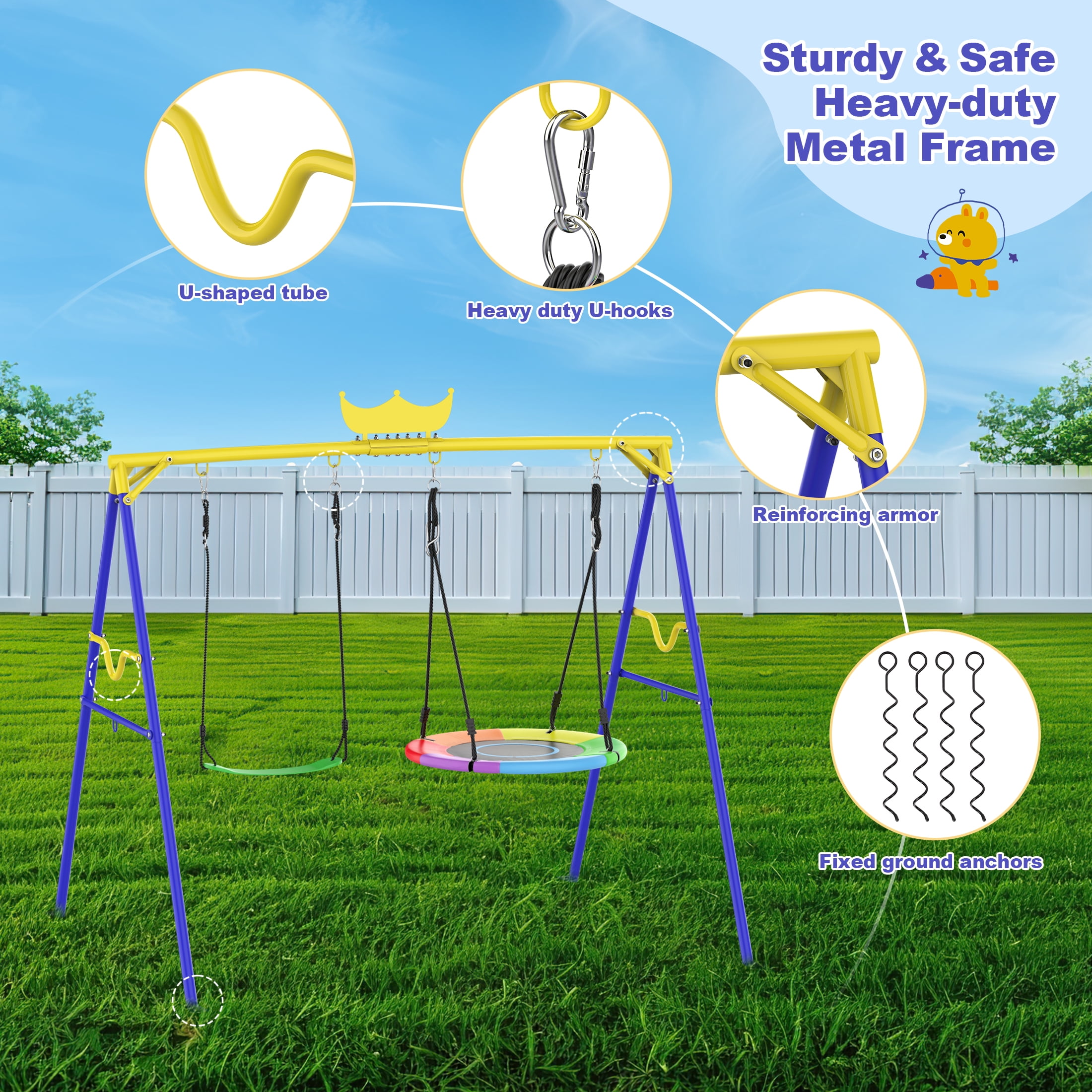 Zifadola Swing Set for Kids/Adults with Saucer and Belt Swings, 440 lb Capacity, 2 Seats, Blue