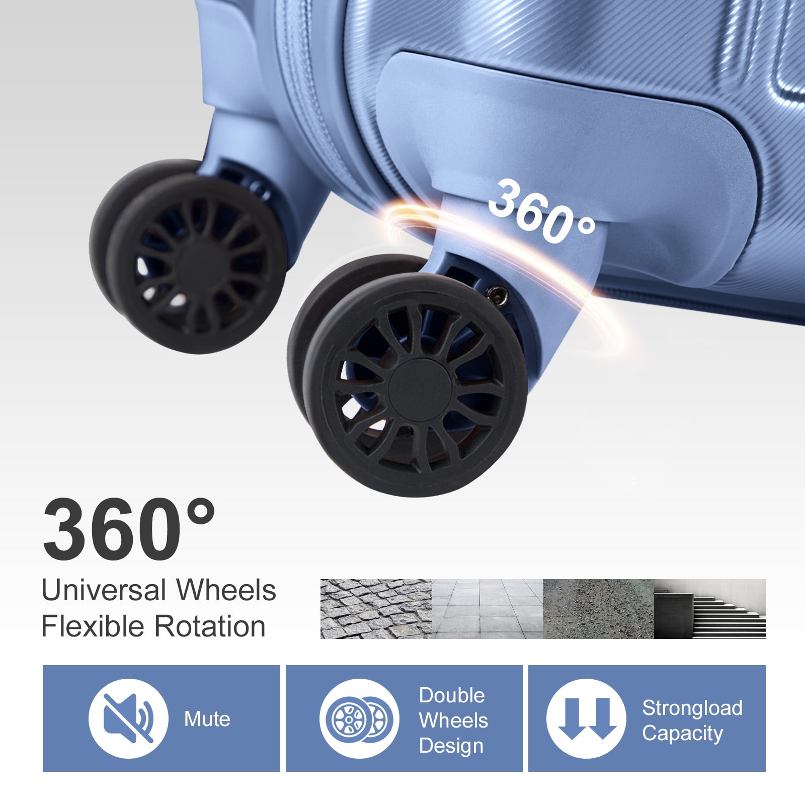 This spinner suitcase built-In TSA lock, it provides security when checked belongings. This carry on luggage mainly crafted by 100% ABS+PC and with scratch-resistant textured finish Open the smooth and durable expandable zipper, can expand the capacity of the suitcase by 20% 14″ cosmetic case to make travel effortless, offer excellent experience for women girls Easy-to-grip handles on top and sides and retractable (three-section) trolley metal rods.