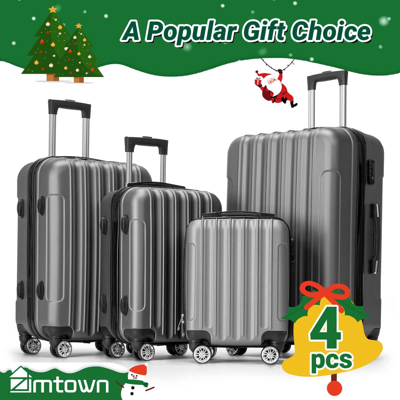 Zimtown 4 Piece Luggage Set, ABS Hard Shell Suitcase Luggage Sets Double Wheels with TSA Lock, Dark Gray