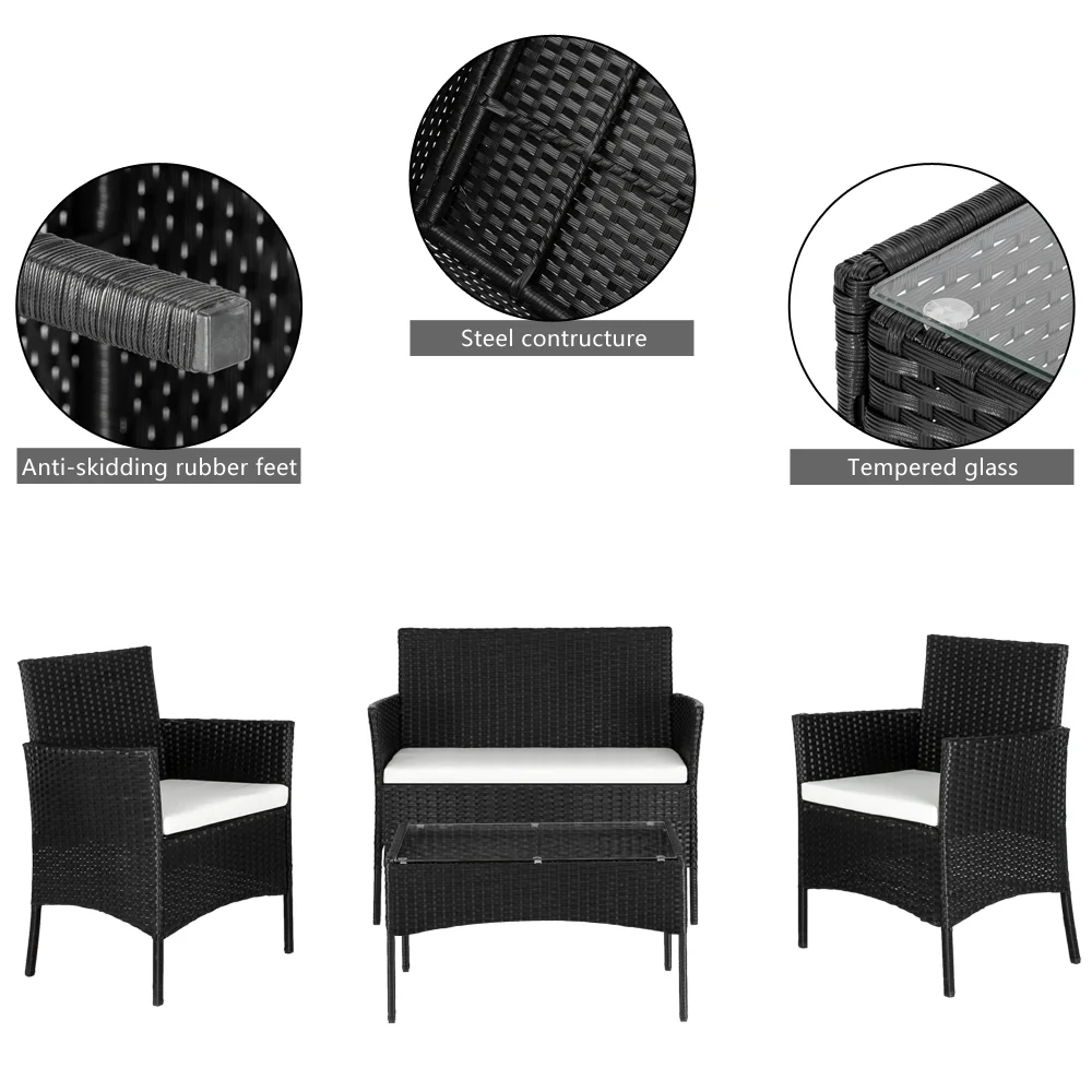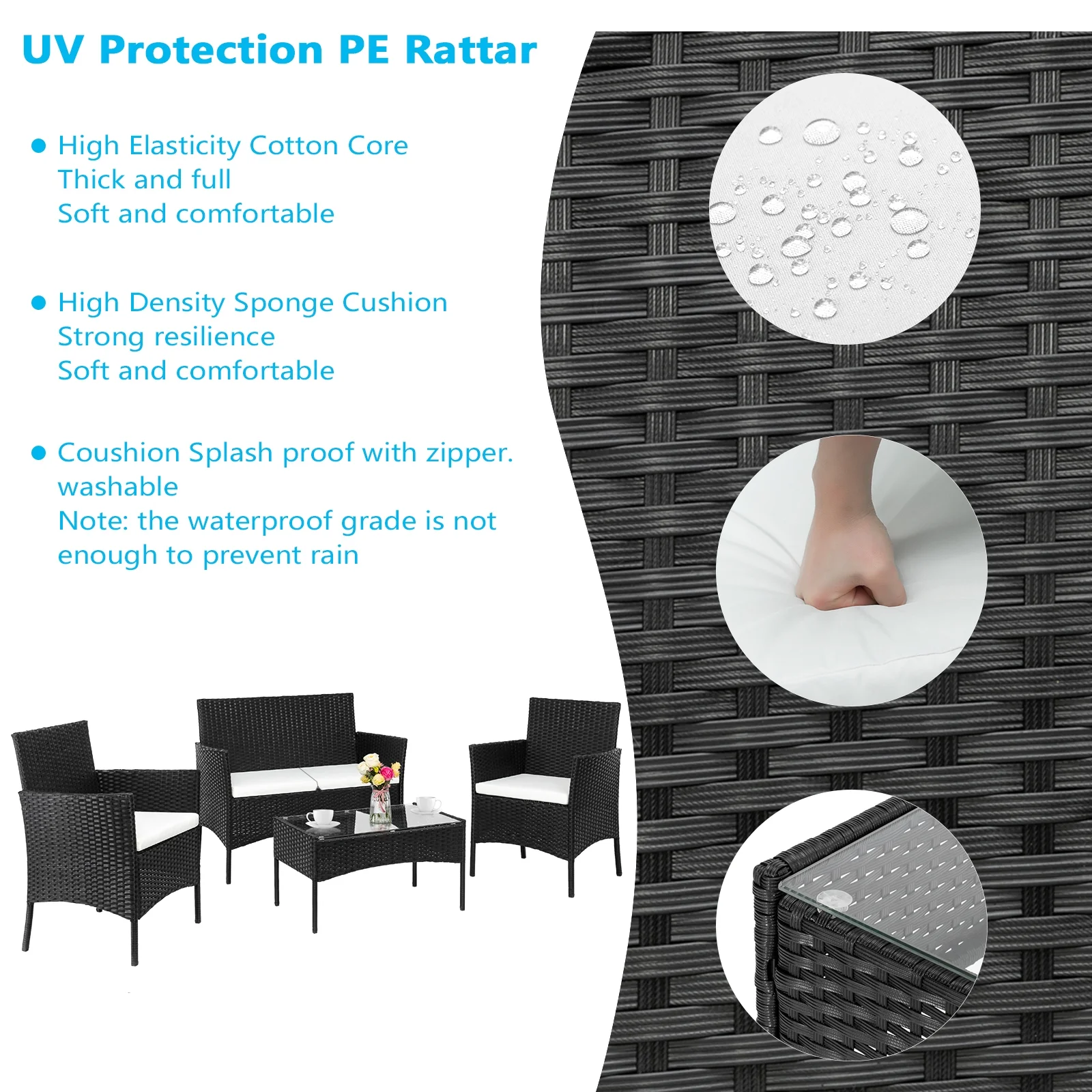 Zimtown 4 Piece Outdoor Conversation Set PE Rattan with Cushions, Patio Wicker Bistro Set with Glass Table