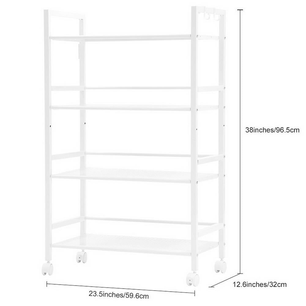 Introductions: Are you looking for a storage cart? If so, you can take this Widen 4 Tiers Multi-functional Storage Cart into consideration. This storage cart is made of iron, which is stable, durable and sturdy. Its design of 4 tiers can hold a lot of items, and its strong bearing capacity is reliable. In addition, it has 4 flexible wheels, so that you can move it easily. Feature: 55 lbs Weight Capacity MORE PRACTIQUE: perfect to use in kitchen, garage, bedroom, laundry room, or office spaces 4 tiers can hold a lot of items Strong bearing capacity, stable and reliable Flexible wheels, easy to move Easy to install Assembly with four smooth-rolling wheels (2 of them are lockable),for easy movement and scratch-free floors. Specifications: Material: Iron Color: Ivory White Dimensions: (23.62 x 12.6 x 39.37)” / (60 x 32 x 100)cm (L x W x H) Weight: 13.67 lbs / 6.2 kg Weight Capacity: 55 lbs Package Includes: 1 x Kitchen Cabinet