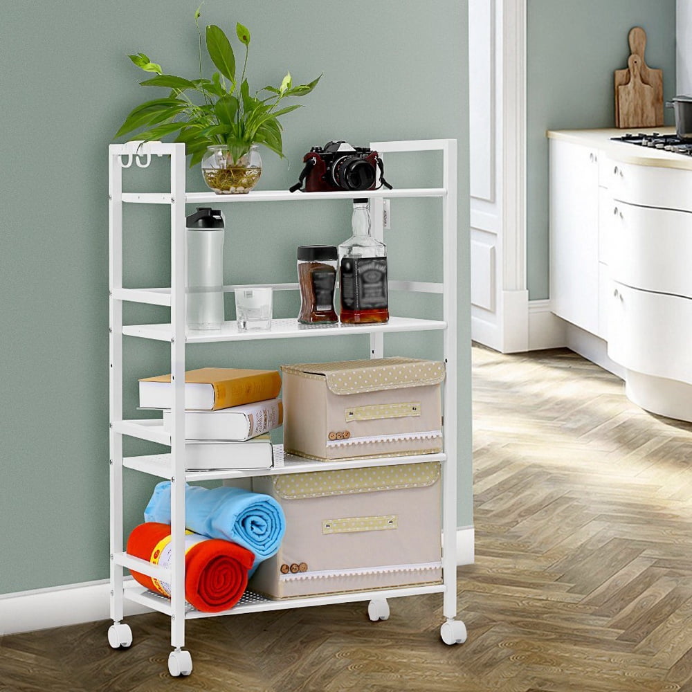 Zimtown 4-Tier Kitchen Cart, Wire Mesh Rolling Cart Serving Utility Shelf Organization, White