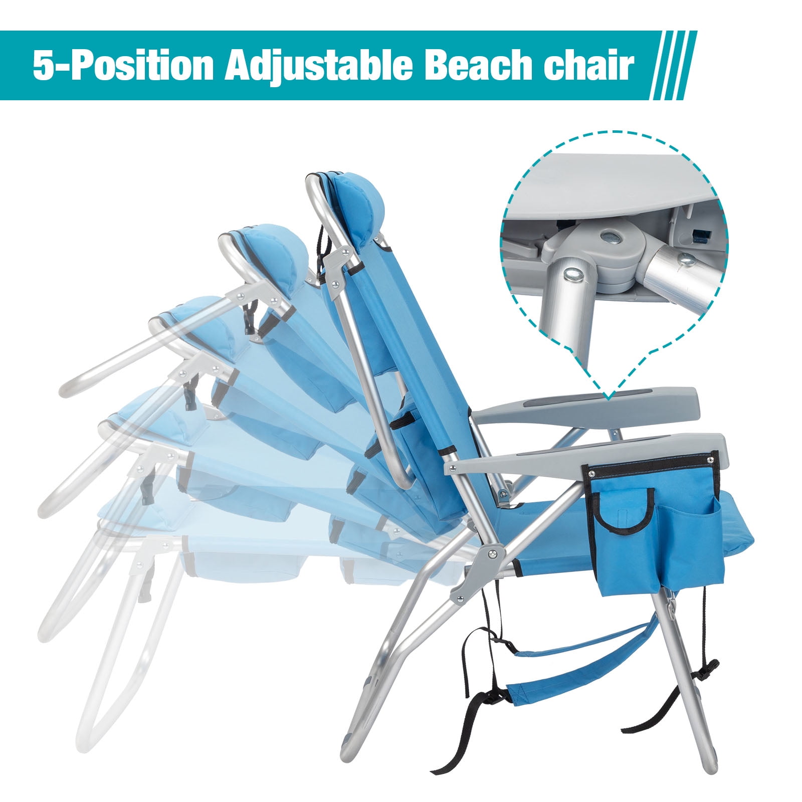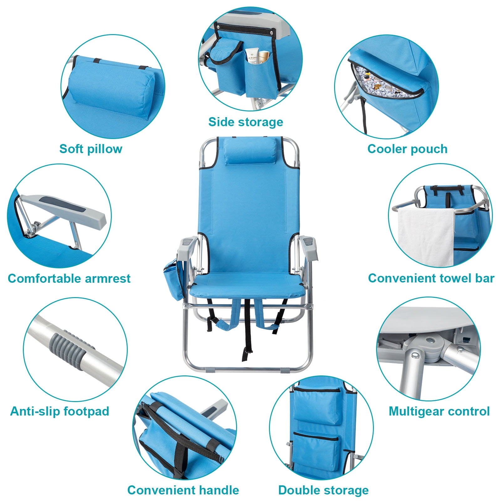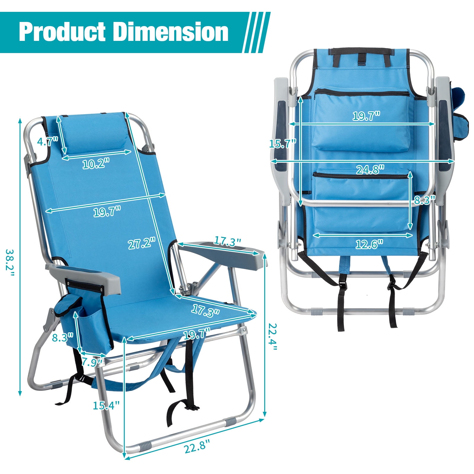 Zimtown Backpack Beach Chair Folding Portable Chair Blue Solid Construction Camping