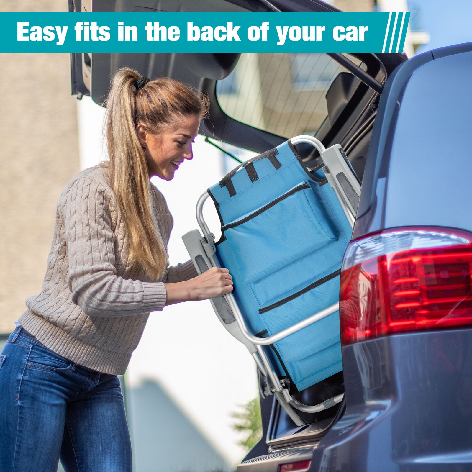 Made of sturdy material, this beach chair is steady and comfortable Very portable and convenient solution when you are on the go It is very simple to open and fold away