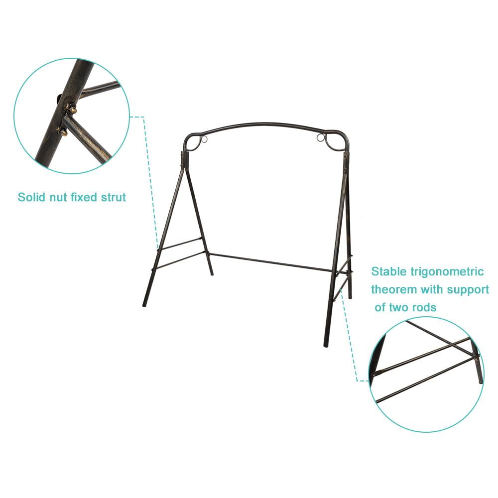 [Weather Resistant] The rust-resistant steel frame and powder coated finish are sure to make this metal swing last for years to come. [Easy to Clean] The swing is very easy to clean. Use the garden hose on the patio to wash the dirt and stains from the swings. It will become clean and new. When the weather is good, maybe you come in for a cup of coffee. The soothing cleaning process reduces your domesticstress. [Customer Service] If there is any questions, please contact with us freely, our customer service team will response as soon as possible. Features: 1. Solid structure design 2. Suitable for gardens, lawns, backyards, porches and patios 3. Features with supporting back plate for added stability insurance 4. Compatible seamlessly with any decorations of your room 5. Made of iron frame in gloss oil surface Specifications: 1. Material: Iron 2. Style: Assemble The Swing Set 3. Color: Bronze 4. Overall Dimensions : (72.24 x 50 x 71.25)” / (183.49 x 127 x 180.97)cm (Lx W x H) 5. Weight: 23.48lbs / 10.65kg 6. Number Of Long Screws: 4 7. Swing Frame Wide Strut: 4 8. Long Strut Of Swing Frame: 1 Package Includes: 1 x Swing Frame 1 x Instruction Manual 1 x Wrench Introductionsï¼ Here is our Outdoor Garden Iron Art Swing Frame. Our sturdy swing frame is the perfect companion to our metal porch swing. This swing accommodates swings. Painted in a bronze powder coated finish provides a classic look with your choice of swing. What are you hesitating about? Buy it!