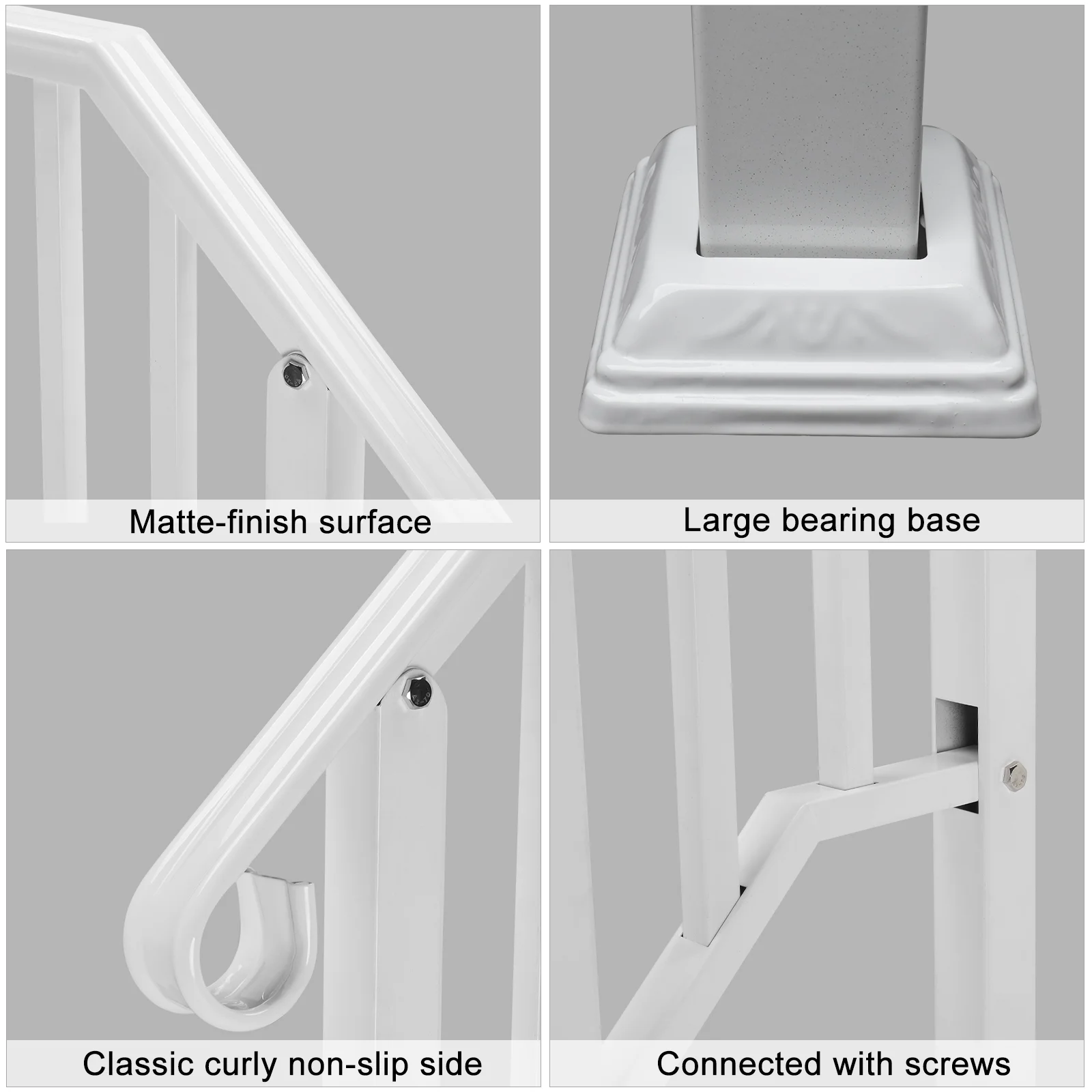 Introductions: The Zimtown Handrail for Stairs Outdoor Steps Handrail Fits 1 or 2 Steps Wrought Iron Handrail is suitable for garden steps. The steps to enter your house are more beautiful. The flexible design of 1or2 steps allows you to choose freely. The whole shape is simple and smooth, giving you a more experience. The design with radian gives you a safer experience. Features: 1.This is 1 Picket #1 Handrail for 1 or 2 steps. 2.This handrail is constructed with real wrought iron, not aluminum. It is more strong and reliable and will not fail or bend like aluminum. Also, stainless steel post mounts will not rust or flex. 3.Adopted powder coating technology, the handrail picket is designed to be matte white. It is rustproof for durability and easy to clean. 4.All the connections are strongly welded and perfectly connected. The iron picket and curved design is beautiful and stylish 5.The handrail includes all necessary assembly and installation hardware. 6.Suitable for gardens, residential buildings, commercial office buildings, hotels, etc. Specifications: 1.Model: 1or2steps 2.Color: Matte White 3.Material: Real Iron Metal 4.Style: Iron Picket Package Includes: 1 x Handrail Powder Coating White 1 x Installation Kit Note: If you encounter difficulties with installation, feel free to contact customer service for assistance or to request an installation guide video.