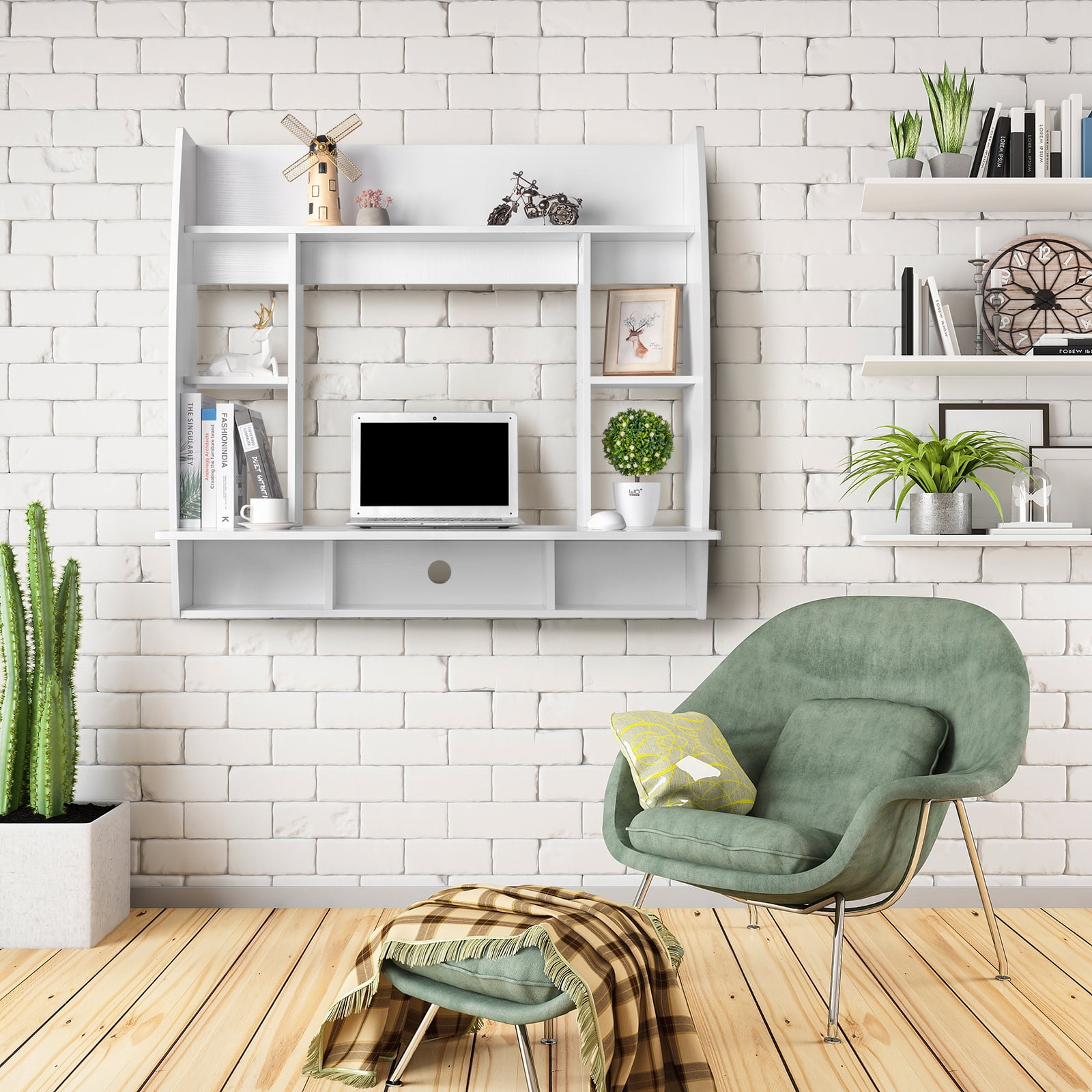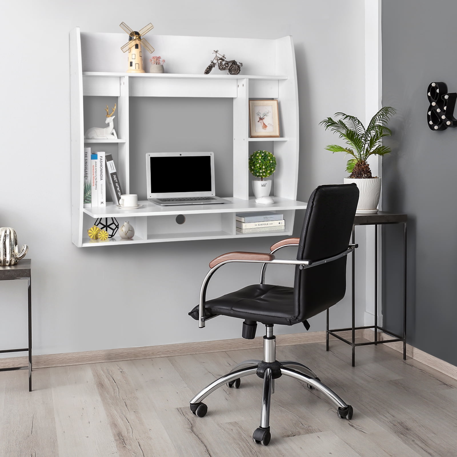 Zimtown Wall Mounted Computer Desk Floating Office Home PC Table with Storage Shelf ,White