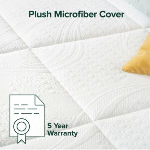 – Worry-free 5 year limited warranty included; fits under any standard or deep pocket fitted sheet; included cover is machine washable