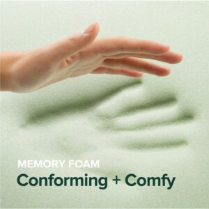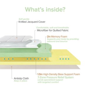 – INNOVATIVE LAYERS – This topper features a .5 inch soft removable fiber quilted cover, 2 inches of green tea infused memory foam and 1.5 inches of high density base foam with comfort zones to support the neck, shoulders and hips