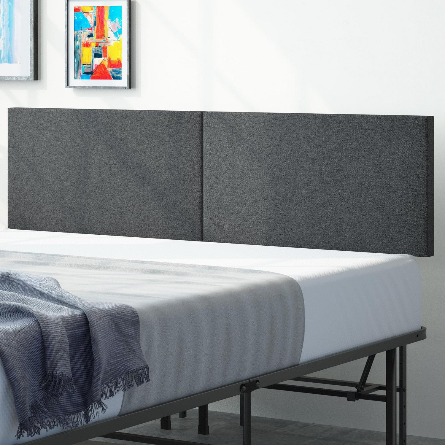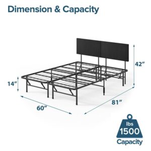 Zinus 42 SmartBase Mattress Foundation with Upholstered Headboard, Metal Platform Bed Frame, Queen