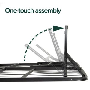 – NO BOX SPRING NEEDED – Platform is made with heavy steel that replaces your box spring, allowing you to rest your memory foam or spring mattress directly on top; steel wires are spaced 4 inches apart; legs have plastic caps to protect your floors