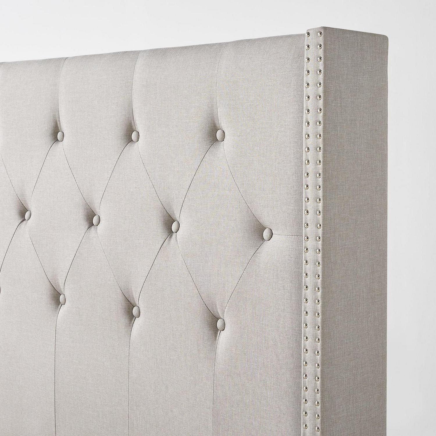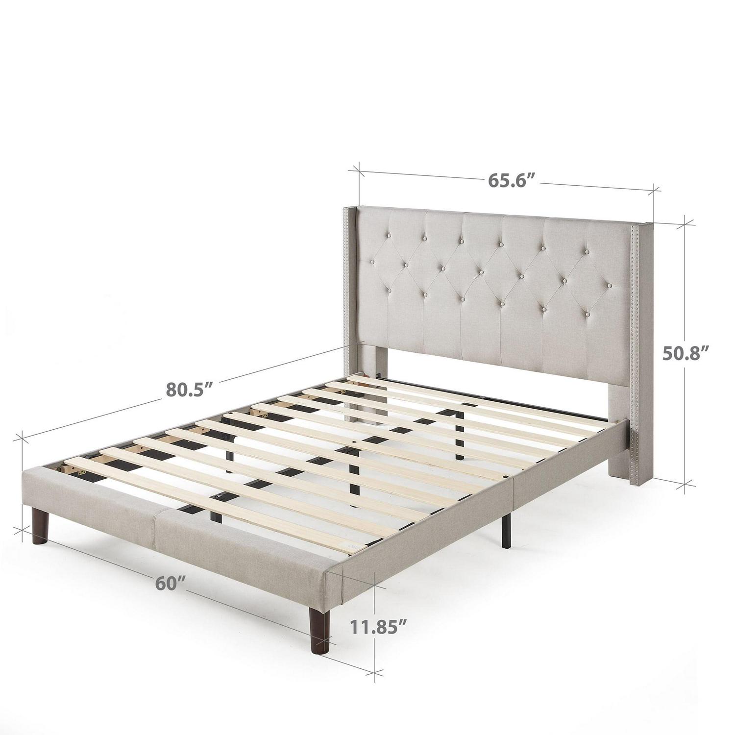 Whether you re dressing up the master suite or needing a statement piece for your loft, the Annette Upholstered Wingback Platform Bed checks all the boxes. Featuring a pale grey upholstery and 51 inch button tufted headboard with nail head accents, this foundation boasts a timeless, sophisticated style that is anything but boring. But don t let its good looks fool you the Annette is designed with our sturdy wood slats and additional center legs for years of reliable mattress support. And our worry-free 5 year warranty is included so there s no chance you ll lose sleep over this purchase. Even if you don t own a toolbox, this bed comes together easily in under an hour so you ll be drifting off to dreamland in no time!