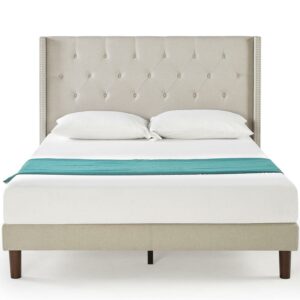 Zinus 51″ Annette Upholstered Platform Bed Frame, Queen, Light Grey