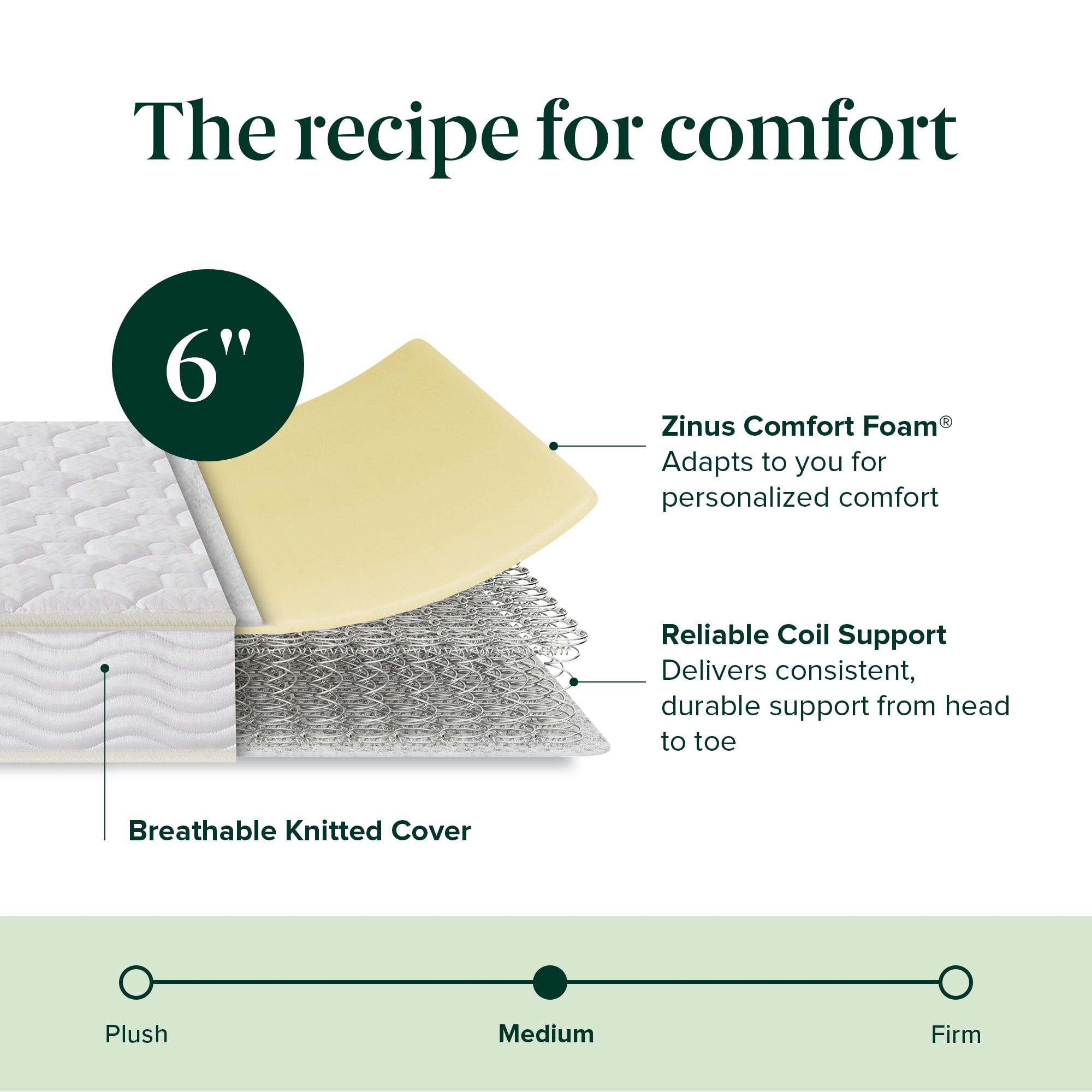 Get comfy sleep for less on the Zinus Tight Top Bonnell Spring Mattress. Mattress is perfect for bunk beds, trundle beds, and daybeds. This budget-friendly mattress has a firm feel and keeps you comfortable at night with its soft and breathable cover. Plus, the long-lasting supportive coils and foam will keep you sleeping great for many nights to come. The foam in this mattress is certified safe, so you can rest easy knowing there are no harmful chemicals. To top it all off, this mattress comes conveniently compressed in a box designed to leave a smaller carbon footprint and includes a 10-year warranty for peace of mind. Age Group: Adult, Universal.