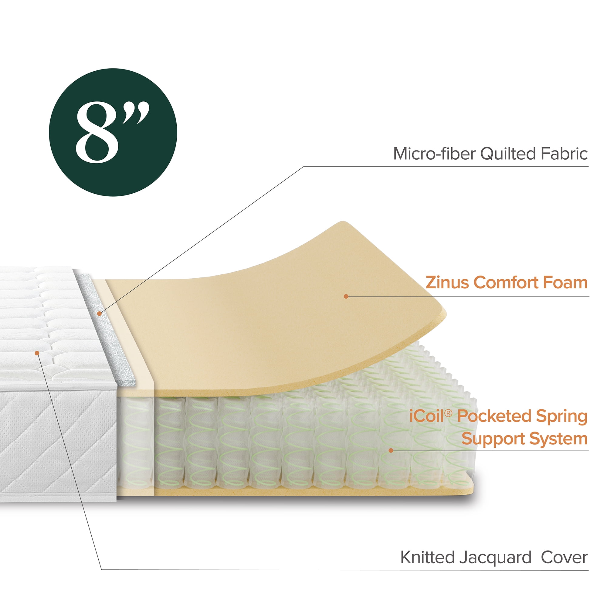 Zinus 8″ Quilted Hybrid Mattress of Comfort Foam and Pocket Spring, Adult, Queen