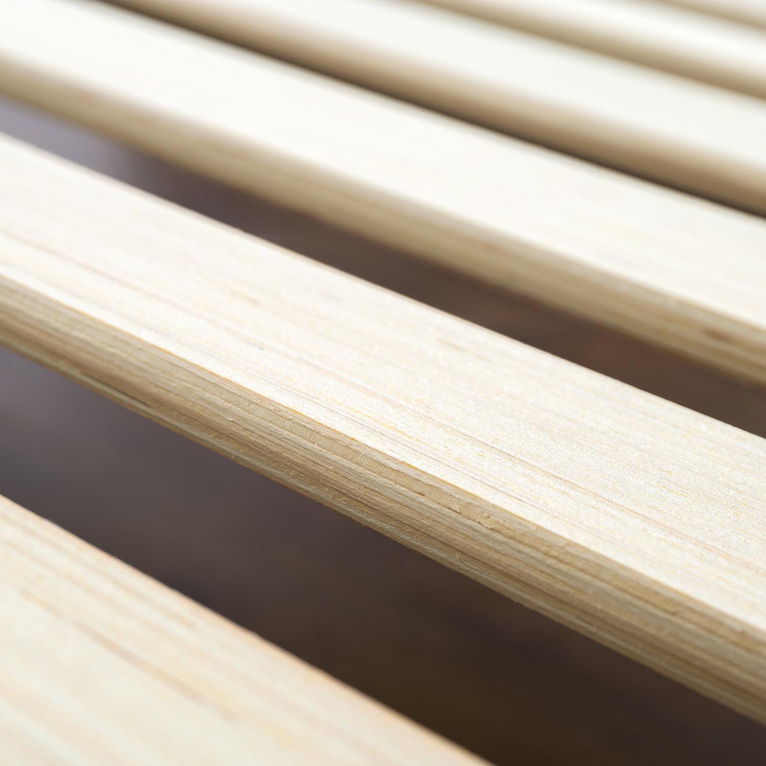 – Foam padded tape is added to the steel frame for noise-free use and non-slip tape on the wooden slats prevents your mattress from moving