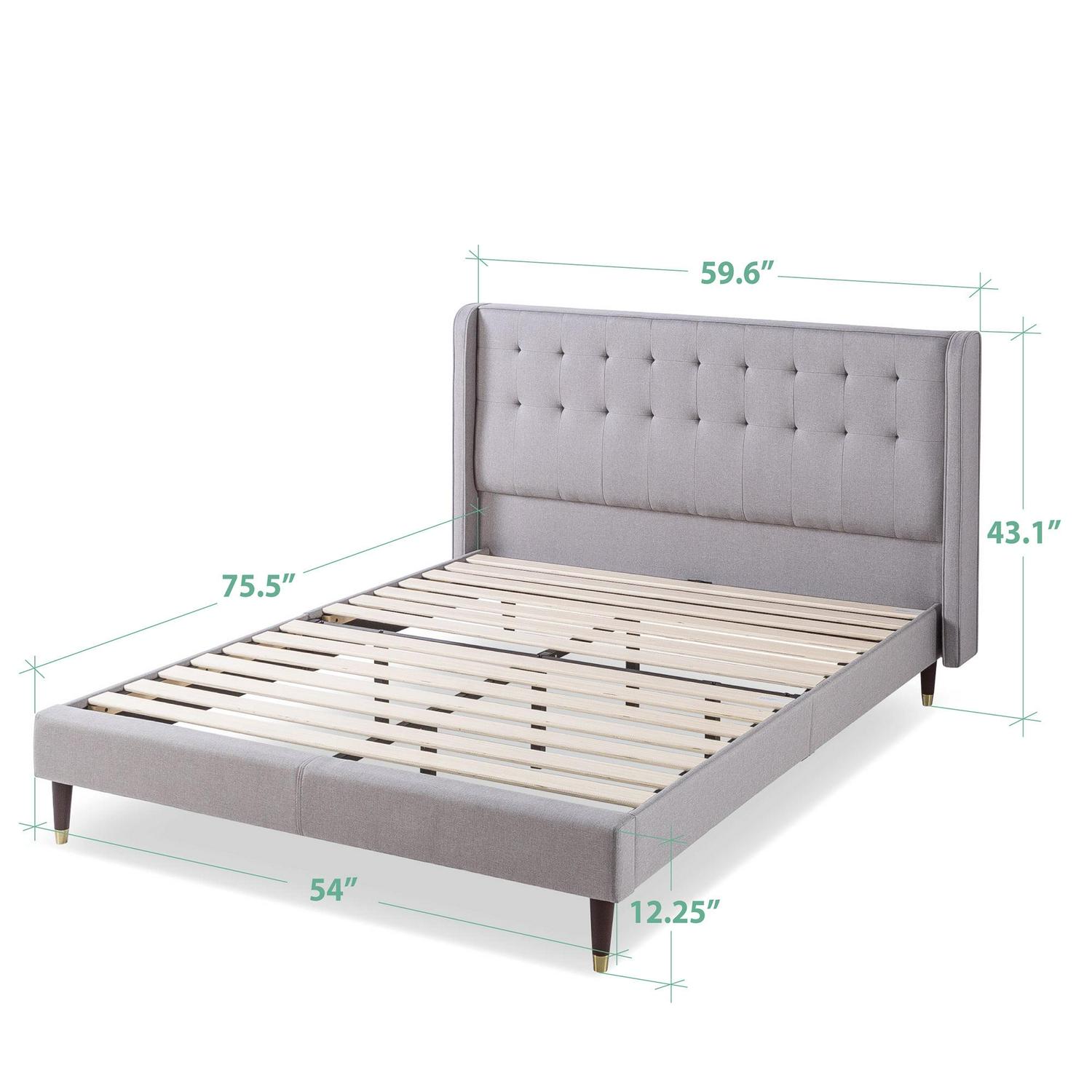 Zinus Benton 43 Upholstered Platform Bed Frame with Wingback Headboard, Full, Gray