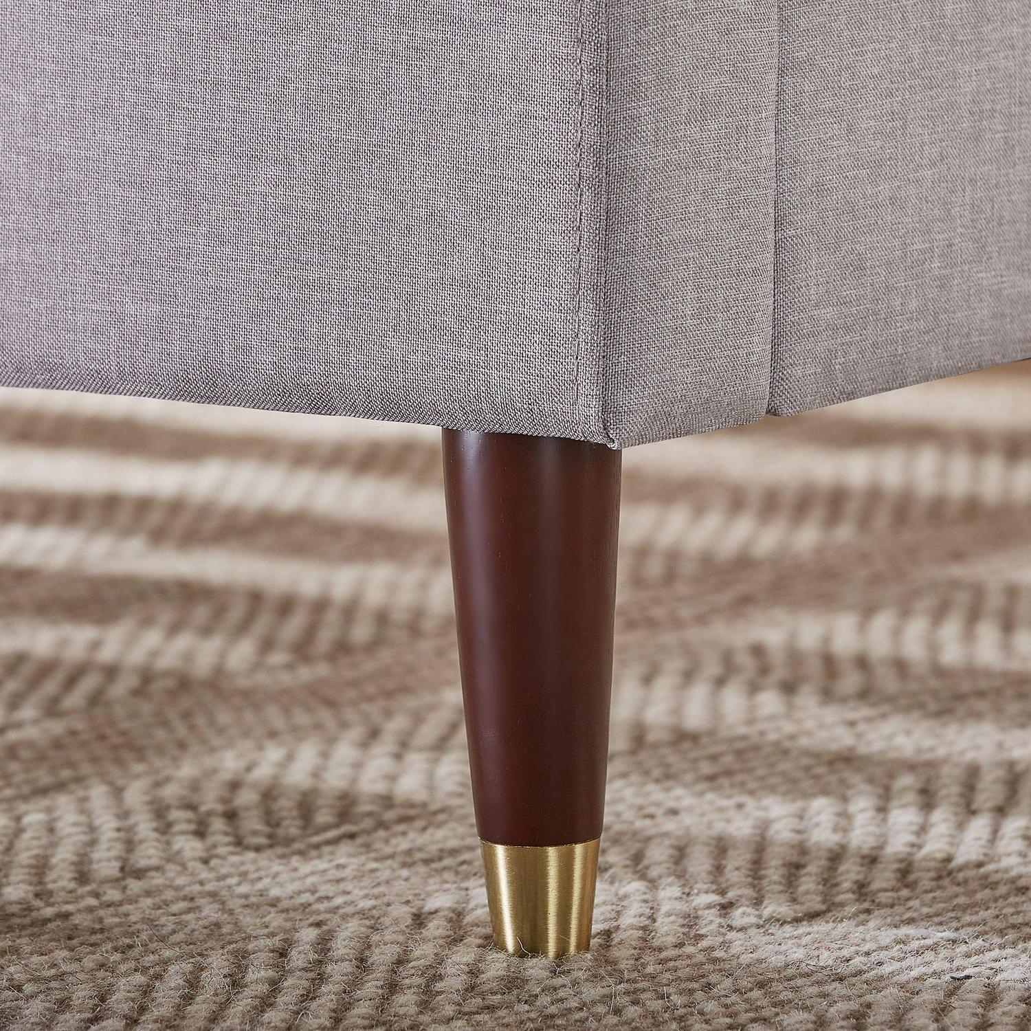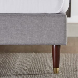 With its soft and elegant tufted upholstery and unmistakable mid-century inspired brass accented legs. The Benton Upholstered Platform Bed is a piece that may just inspire a complete bedroom makeover. Complete with refined details like soft, rounded wingbacks, grid tufting and foam padding on the headboard. This foundation feels every bit as good as it looks. The Benton features our dependable wood slat support system, so you can rest your mattress directly on top without a box spring. Our 5-year worry-free warranty to give you peace of mind. This devilishly handsome centerpiece has a whole lot going for it.