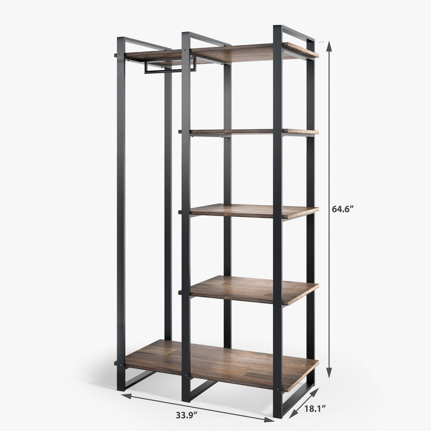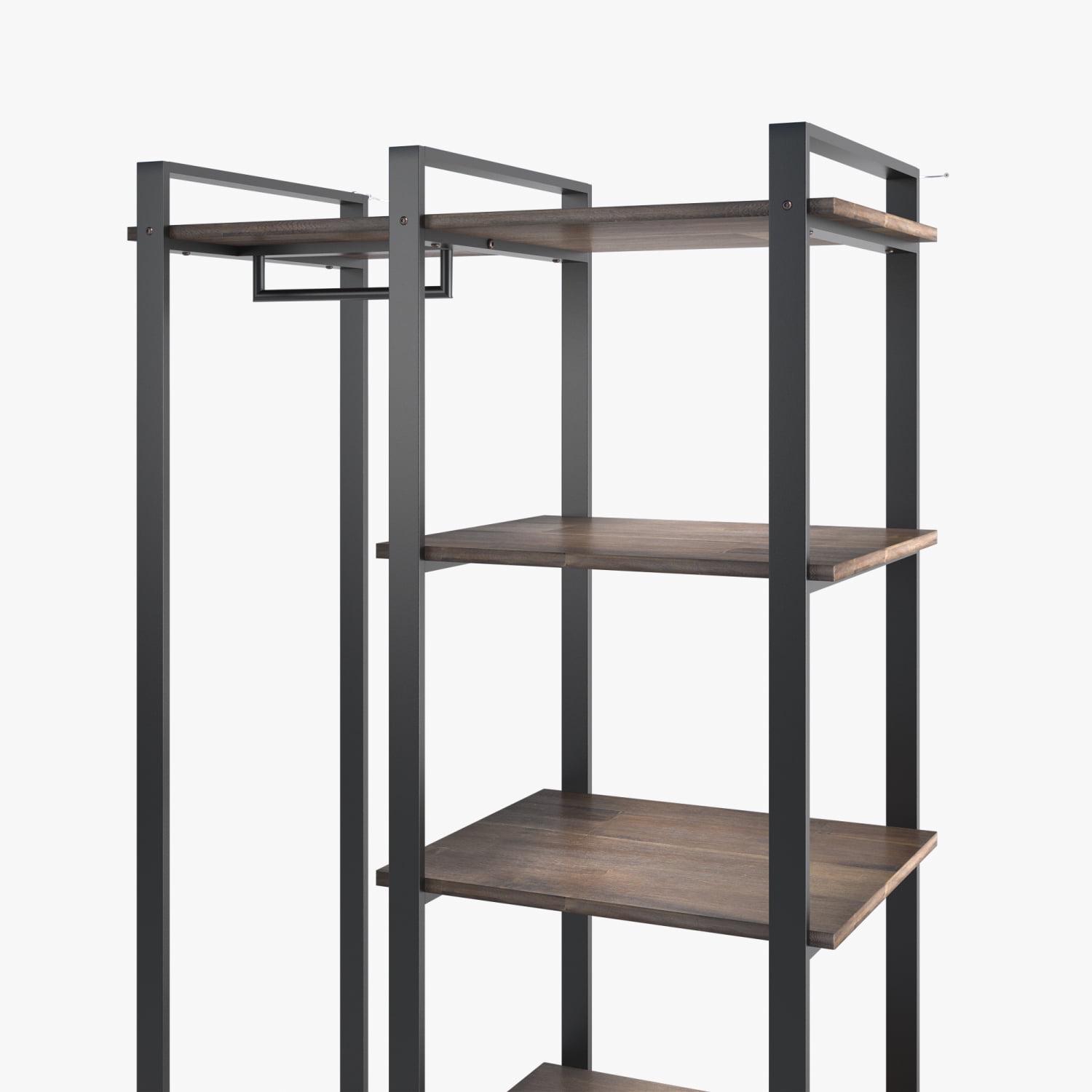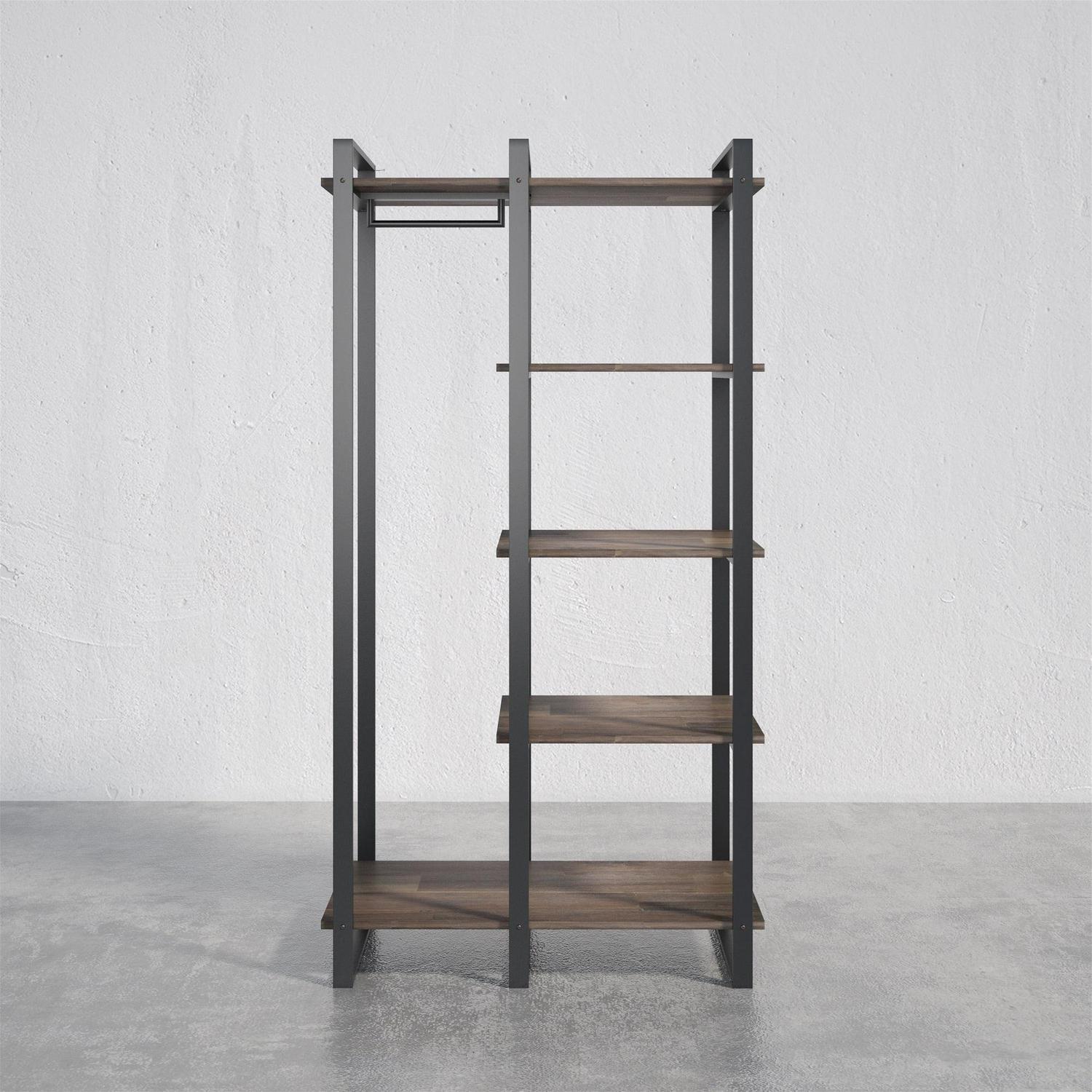 Beautiful and incredibly functional, the Brock Etagere Bookcase checks all of the boxes for a practical storage solution, and more. For starters, it s made with genuine acacia wood and a robust steel frame for ultimate strength and durability. Equipped with a convenient hanging rod and four spacious shelves, the Brock can easily double as a catchall for your mudroom coats and boots, extra closet space in the bedroom, or a place to house your personal library. And did we mention how easy-on-the-eyes this piece is A unique, rustic wood grain pattern coupled with brass-finished hardware adds class and character that pulls together any room handsomely.