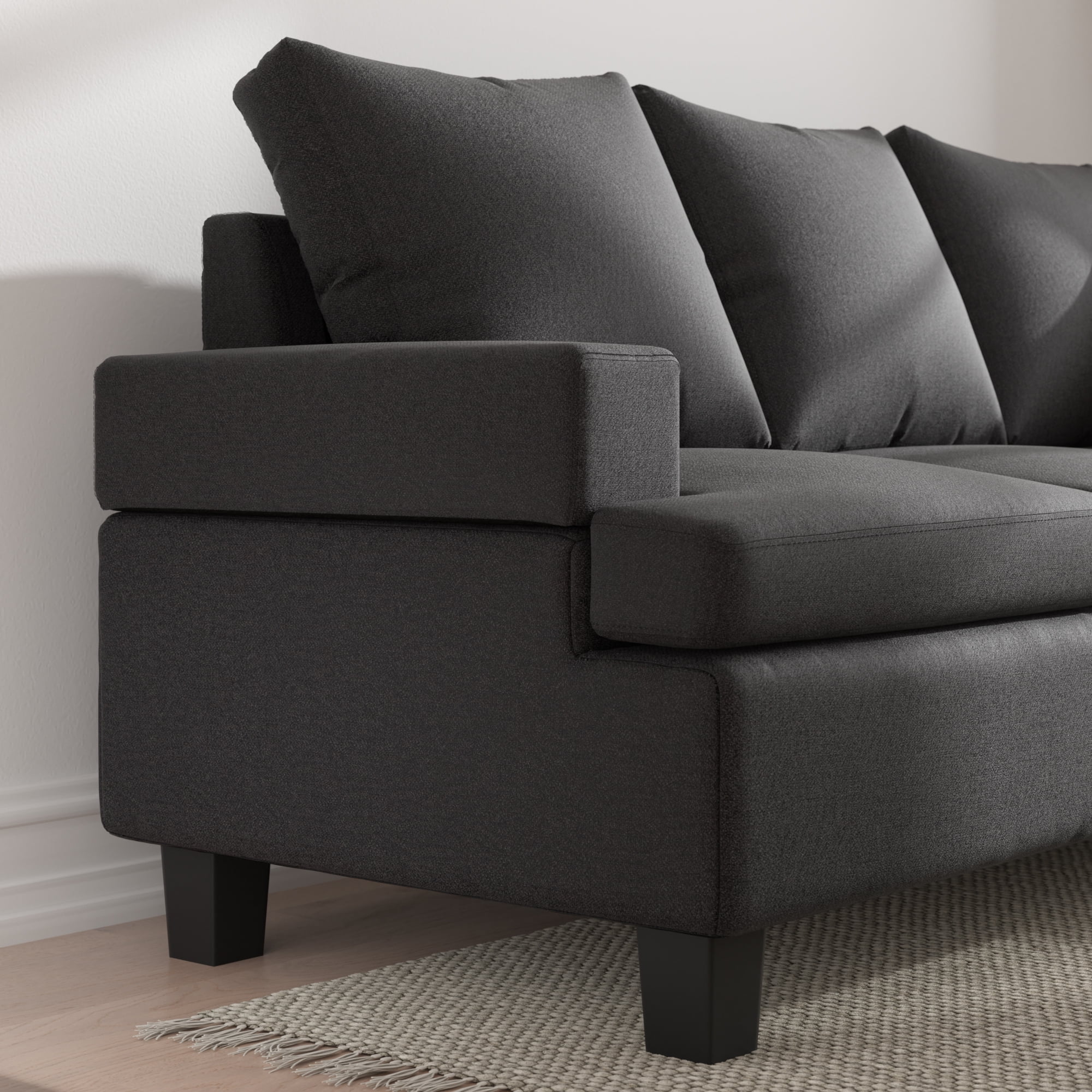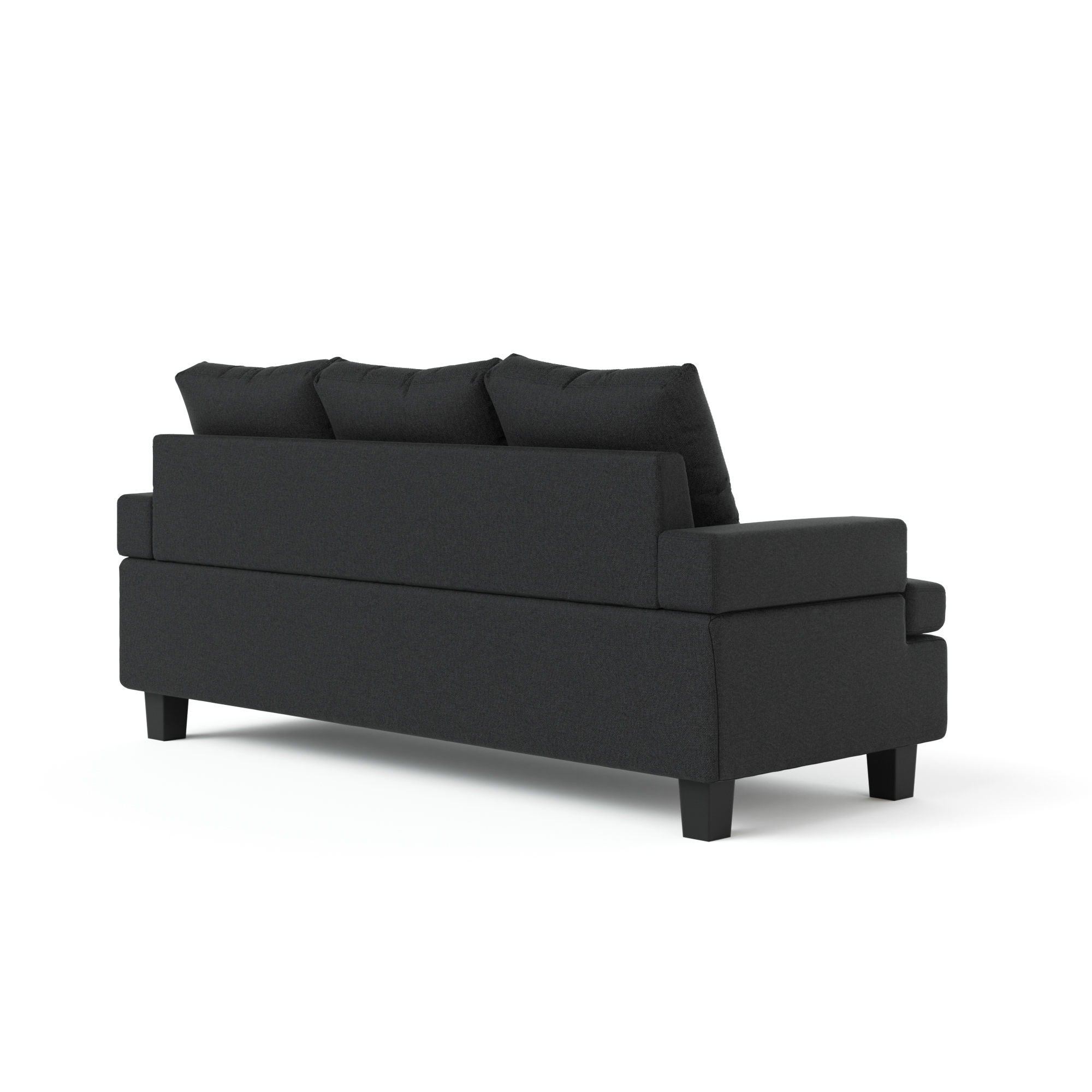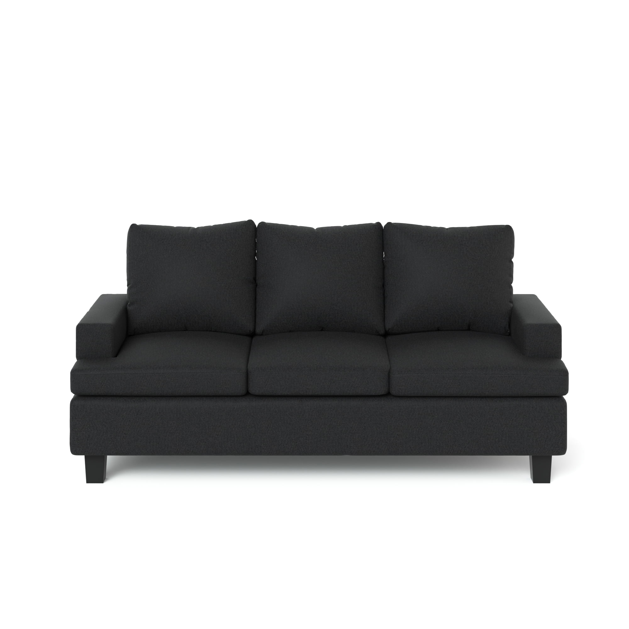 A classic living room staple, this Chase sofa brings contemporary charm and comfort to any living space. With just a touch of modern edge, its sleek silhouette comes in dark grey upholstery, featuring a 3-cushion design with supportive foam cushions, soft padding, and squared-off arm rests to complete its versatile aesthetic. Good for more than just its looks, this piece offers just-right comfort that’s not too soft, not too firm and perfect for hours of lounging. Its textured fabric can be spot cleaned for easy maintenance. With its convenient one-box shipment, including all parts and instructions needed for its easy, tool-free assembly, you can put together your new sofa in just minutes! And if it’s not everything you dreamed it would be, a worry-free 1-year warranty is included for added peace of mind. Age group: adult.