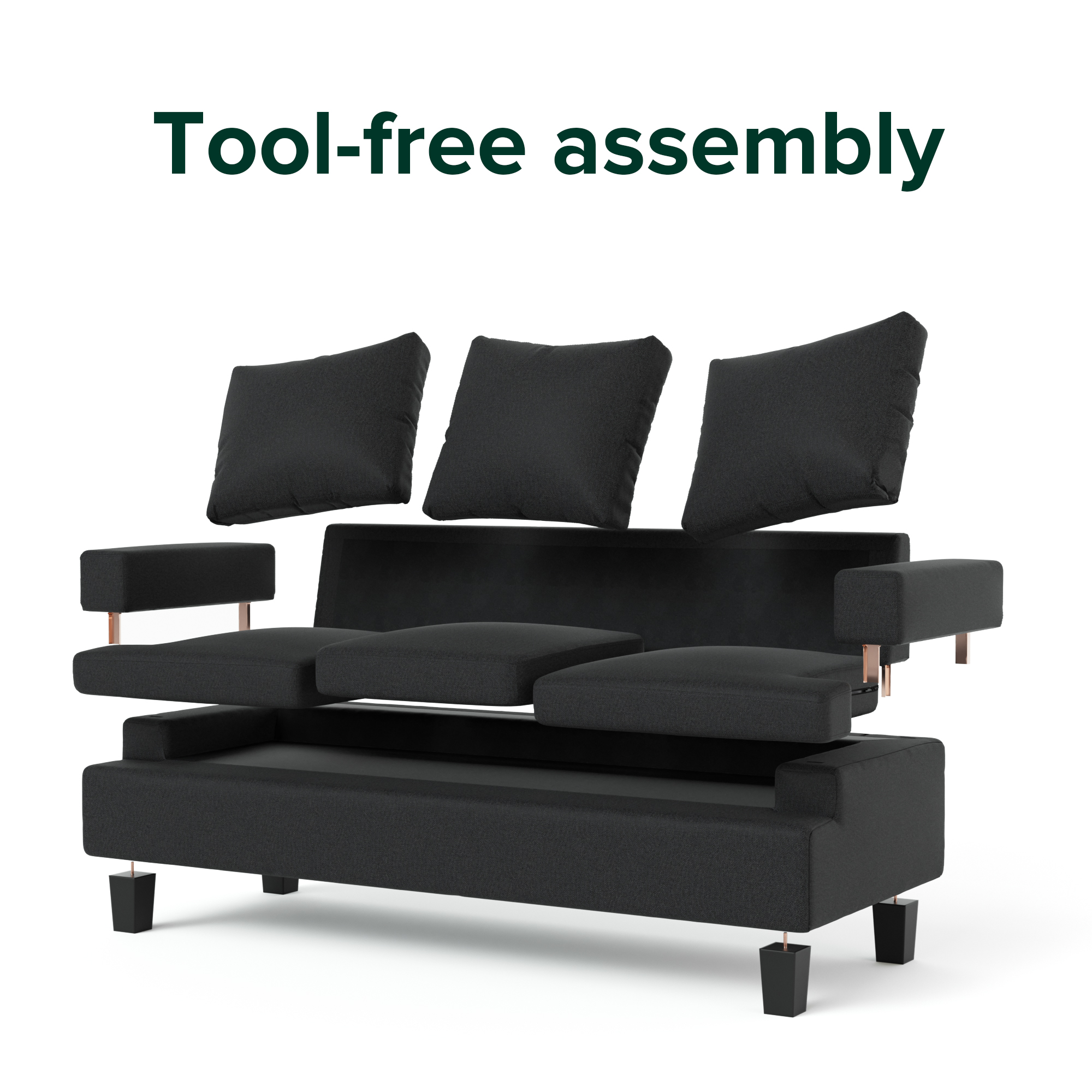 Zinus Chase Indoor Sofa, Grey Contemporary charm with modern flair Classic 3-cushion design and versatile dark grey upholstery Tried-and-true comfort with comfy foam seat cushioning and soft padding Easy tool-free assembly with all parts and instructions shipped in one convenient box Worry-free 1-year limited warranty included Age group: Adult See our assortment of Zinus products