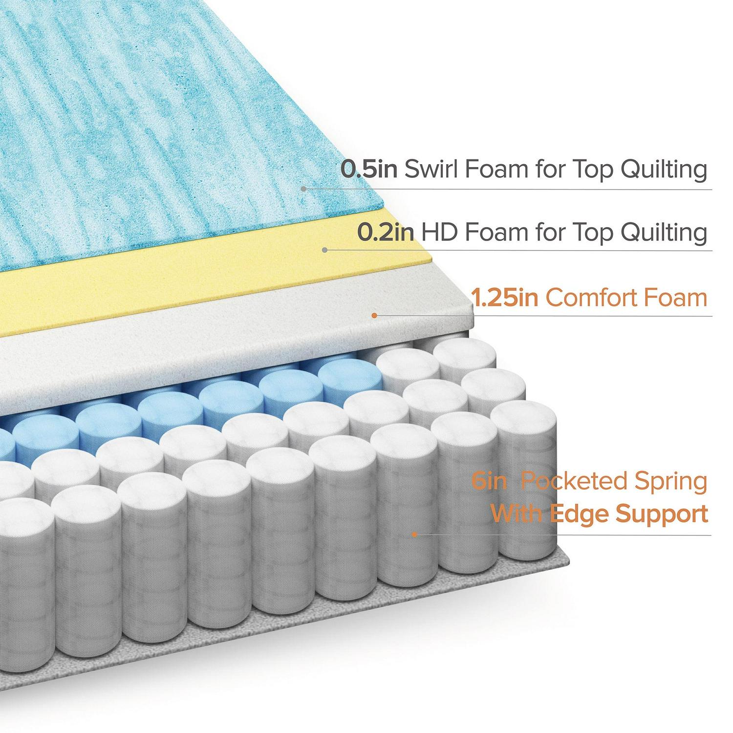 - Swirl gel memory and comfort foams with steel pocket springs