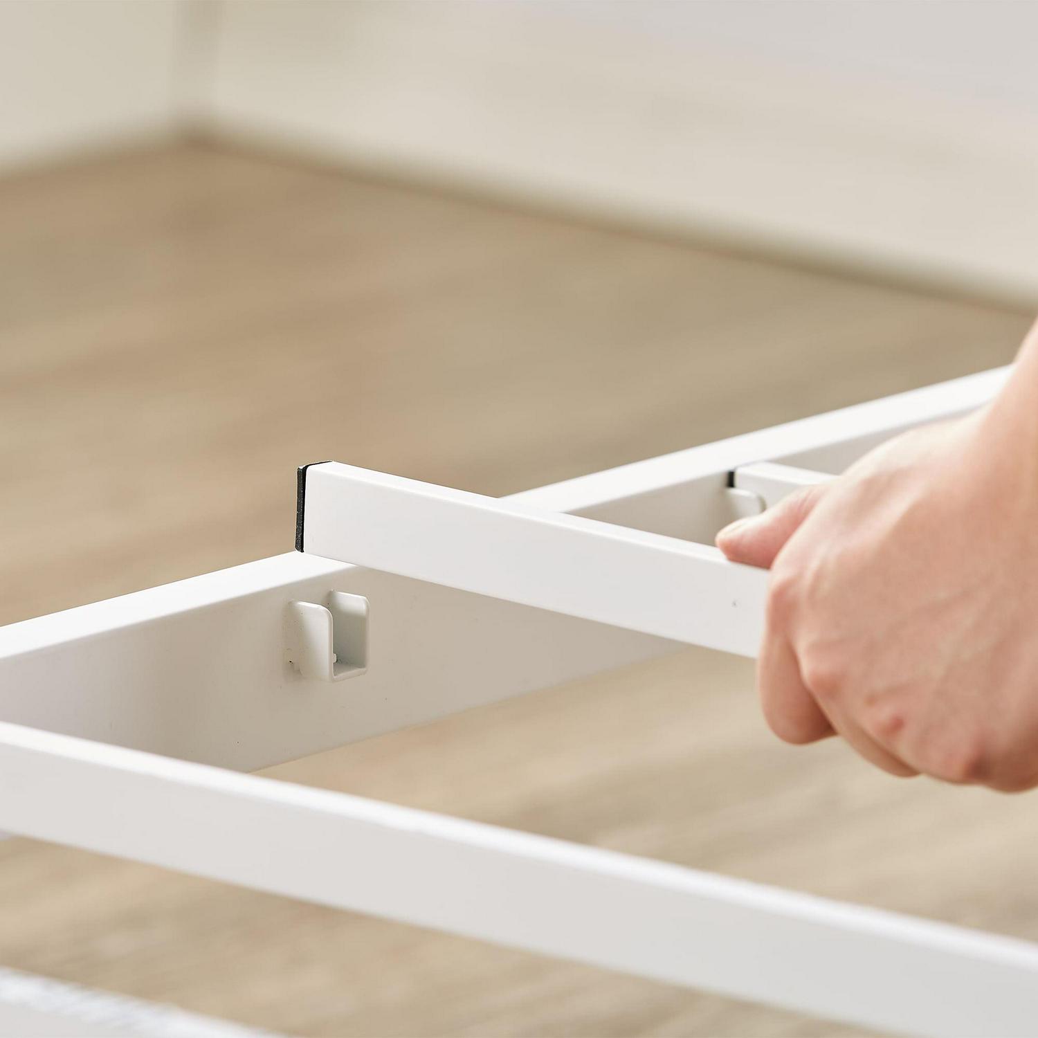 – NO BOX SPRING NEEDED – Slatted metal foundation beautifully supports memory foam, spring and hybrid mattresses without a box spring; twin size supports up to 350 lbs, while all other sizes can support up to 700 lbs