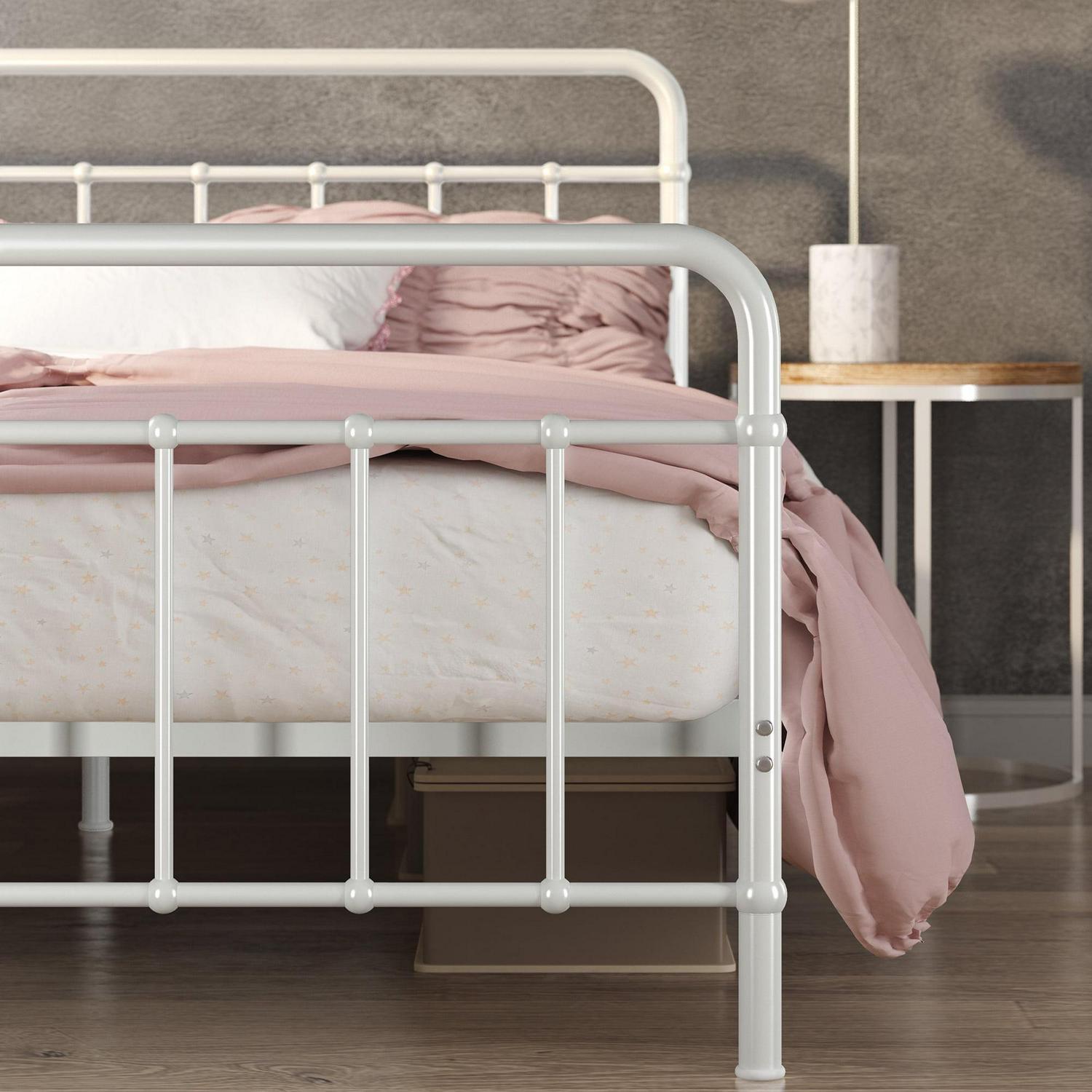 – DESIGNED TO PLEASE Whether your style is industrial, traditional or farmhouse, this classic painted metal frame can elevate a variety of home interiors with its spindle headboard and curved silhouette