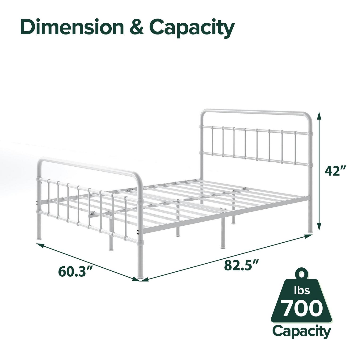 Absolutely très chic for your French countryside aesthetic but also distinct and bold enough for a modern industrial style loft, the Florence Metal Platform Bed completes whatever look you re going for. Finished with a charming curved spindle headboard and footboard, this gorgeous bed is the definition of style and substance. Made completely of durable steel, this high quality foundation features multiple steel support legs and a platform made to support your mattress without the box spring. Plus, a new and improved structure with 42 inch height will showcase its classic spindle headboard even if your mattress is on the taller side. And its full 12 inches of under bed clearance is ideal for storing extra odds and ends. It s available in three classic colors and ships in a compact box with everything you need to assemble it, plus a 5-year worry-free warranty. Finished with a more than reasonable price tag, this lovely frame is sure to fool your houseguests into thinking you spent beaucoup bucks.