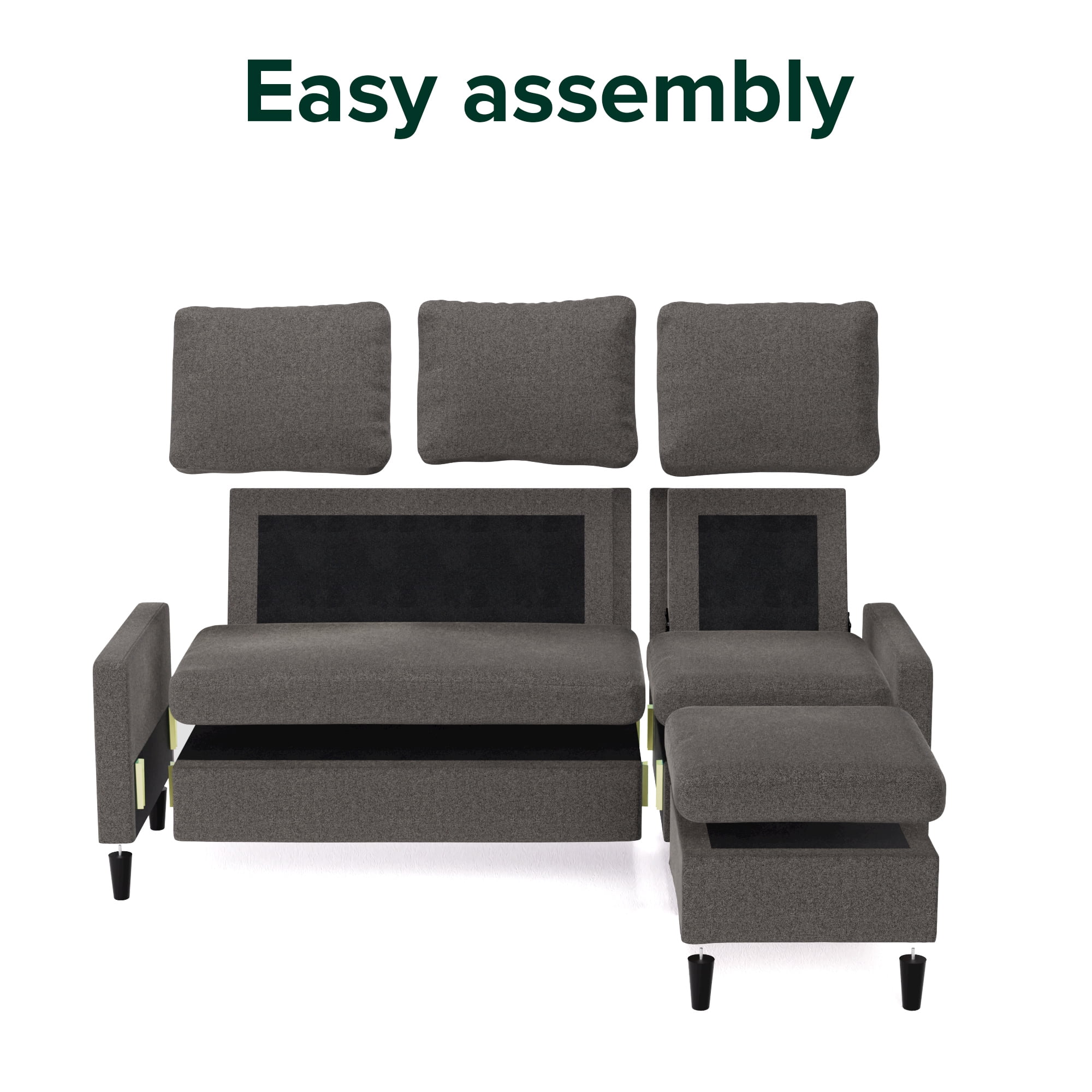 – One Box, No Headaches This entire sectional ships in just one box that fits easily through the front door with all tools, parts, and instructions included for setup in under an hour