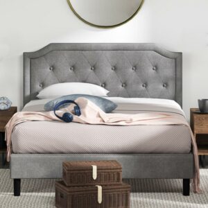 Zinus Kellen 43″ Upholstered Scalloped Platform Bed Frame, Queen