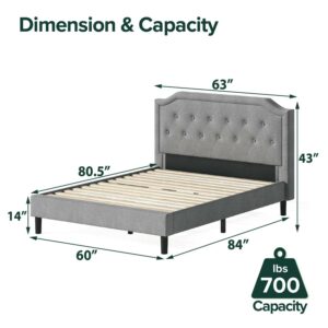 Zinus Kellen 43 Upholstered Scalloped Platform Bed Frame, Queen