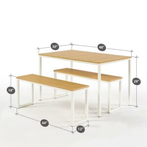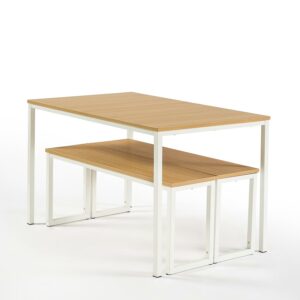 Zinus Louis 48 White Metal Frame Dining Table with Benches, 3 Piece Dining Set