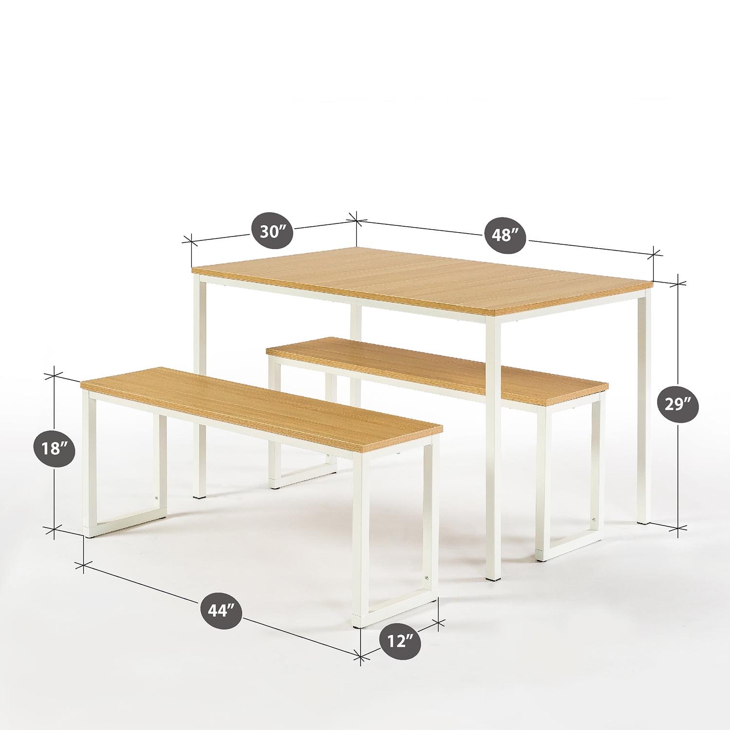Zinus Louis 48 White Metal Dining Table with Benches, 3 Piece Dining Set