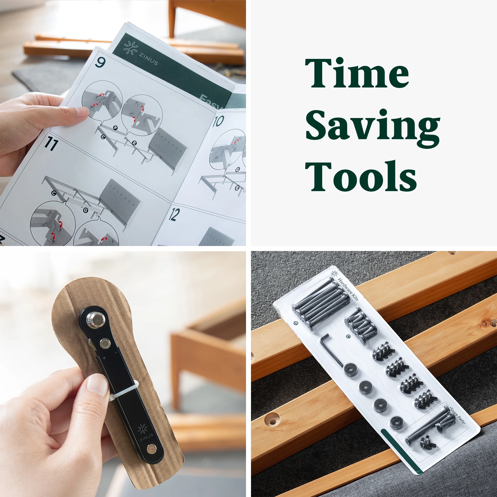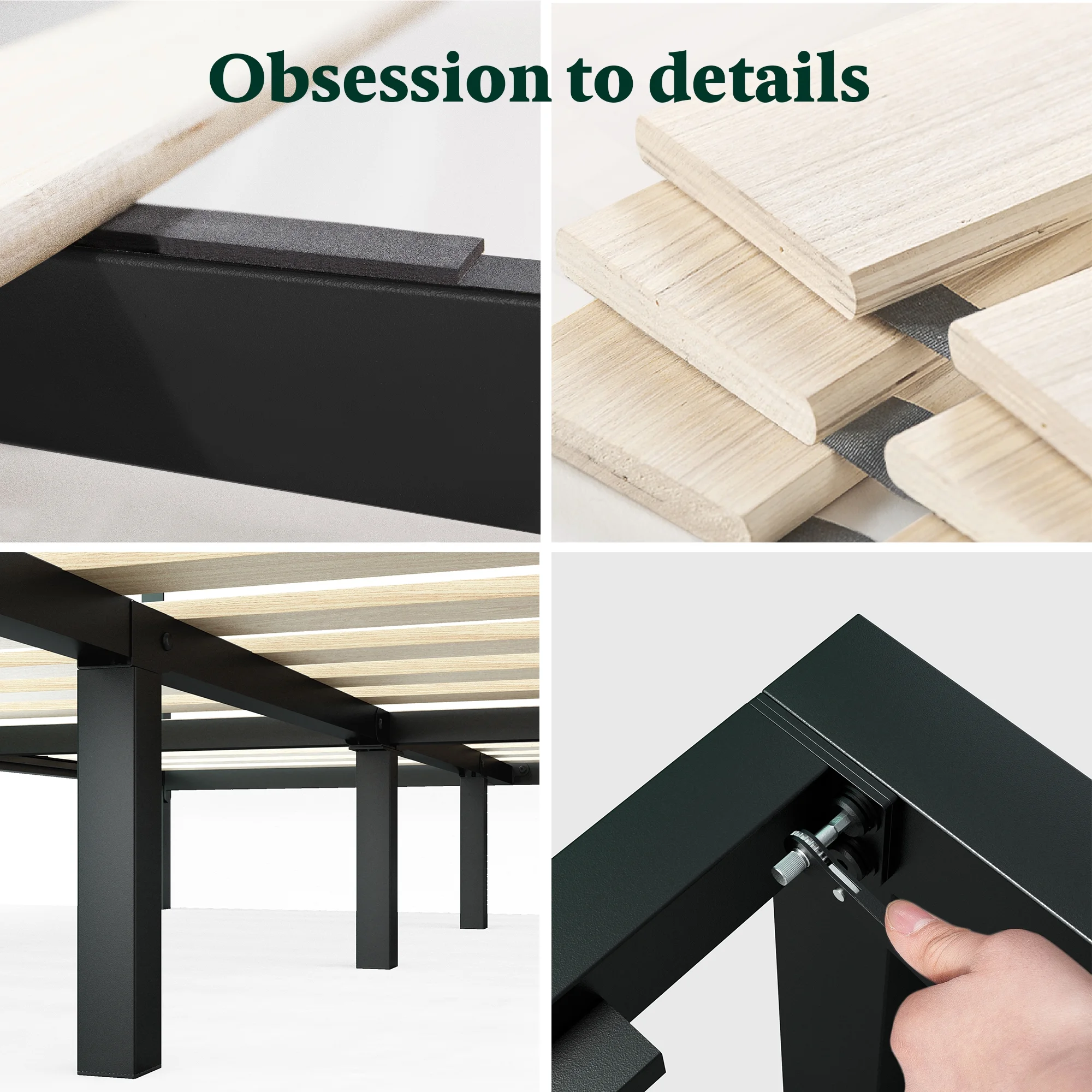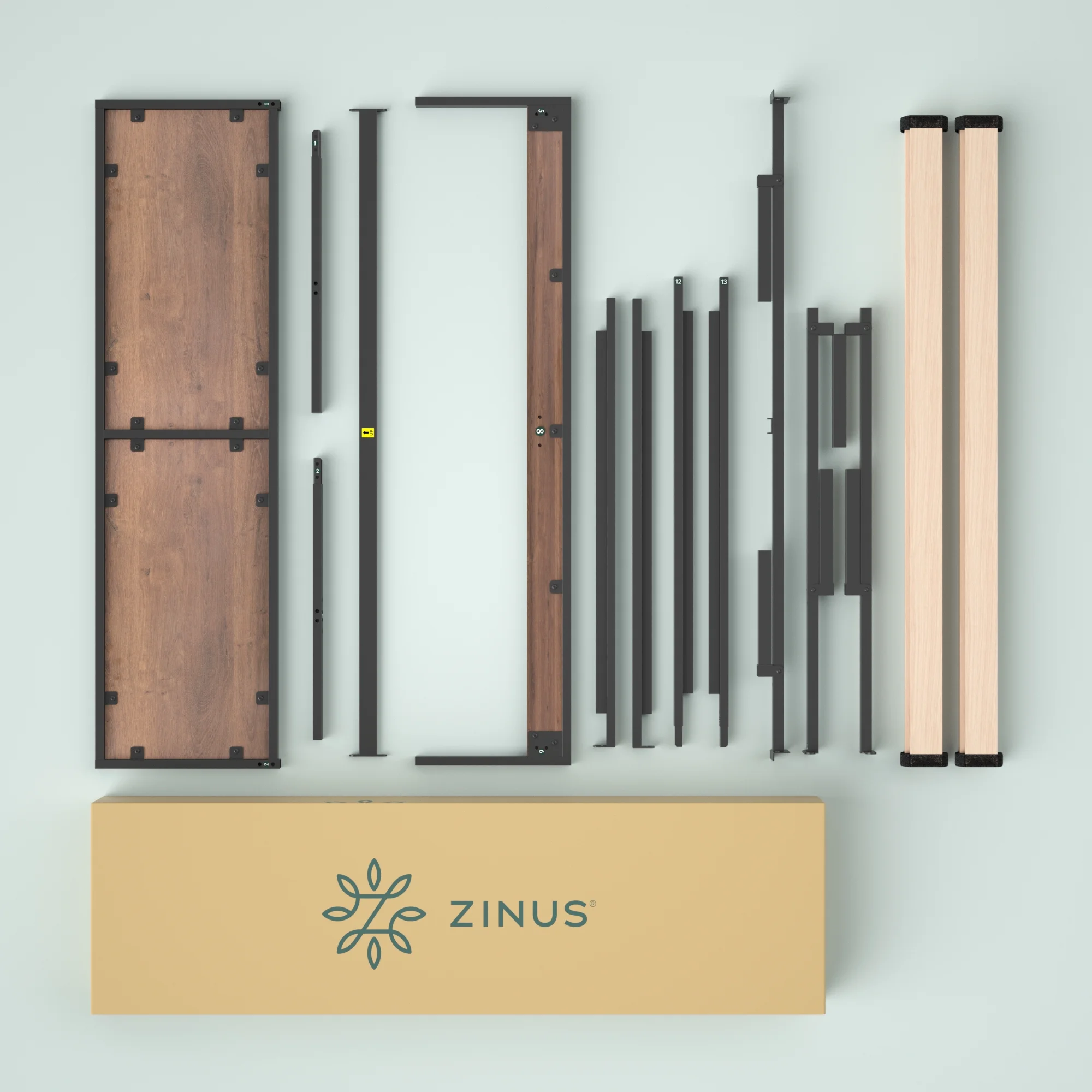 Zinus Mory 37″ Metal Platform Bed Frame with Split Headboard, Queen HIGH STYLE, LOW PRICE – Impressive mattress support that’s also modern, sophisticated, and affordable? The Mory Platform Bed is the answer, with its rich wood finish, clean-lined steel frame, and rock-solid mattress platform BUILT TO LAST – Sturdy steel frame with plywood mattress platform includes additional steel legs and center support bar underneath for long lasting support; twin size supports a maximum weight of 350 lbs, while all other sizes can support up to 700 lbs NO BOX SPRING NEEDED – Designed with sturdy wooden slats to support and extend the life of any foam, latex or spring mattress without the use of a box spring EASY ASSEMBLY – Everything you need is efficiently packed into one box and shipped straight to your door; all parts, tools and instructions are included for easy, two-person assembly in under an hour Worry-free 5 year limited warranty included; mattress sold separately Age Group: Adult, Universal. See our assortment of Zinus products